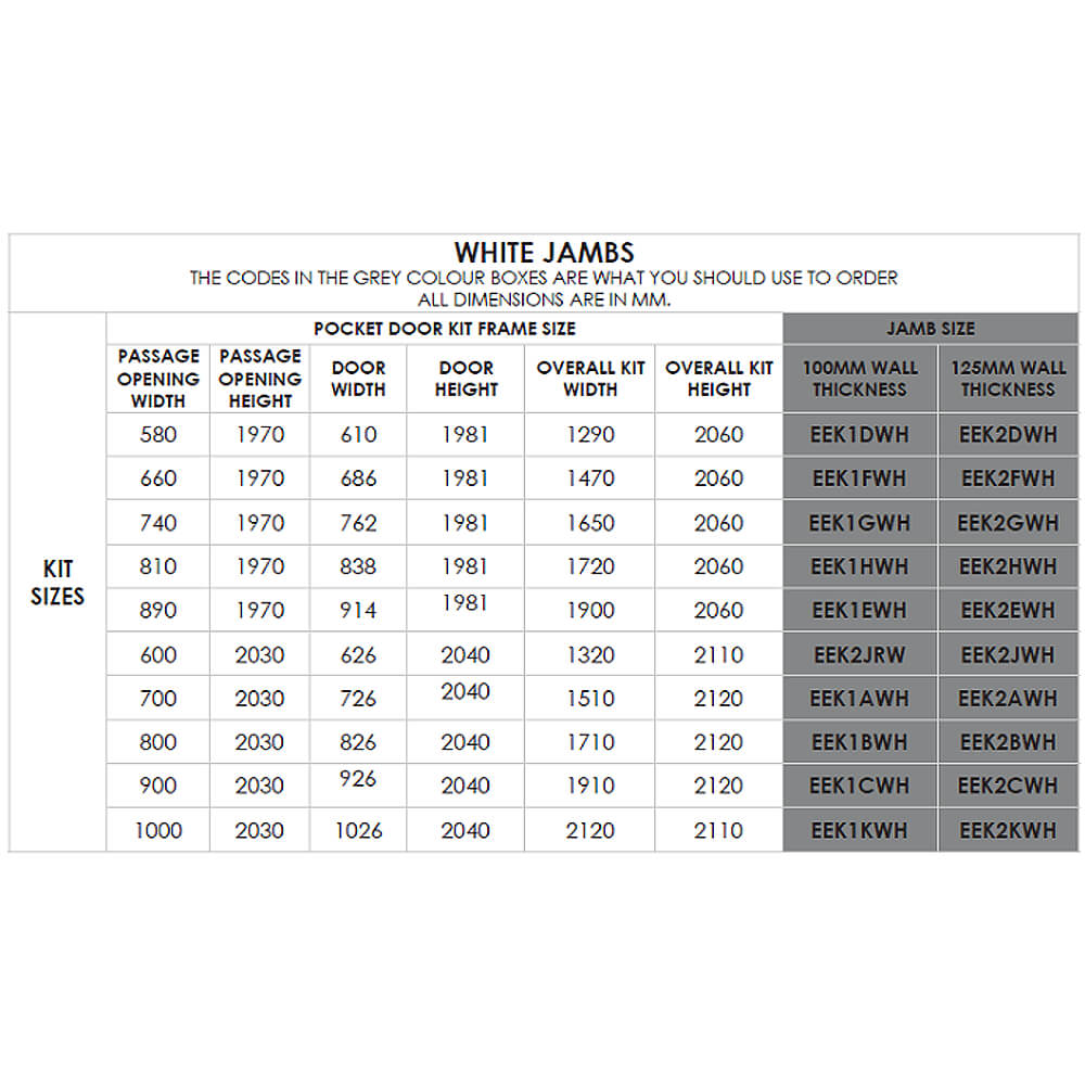 Atlantic Ermetika EvoKit White Framed Pocket Door System - 100mm Wall Thickness.