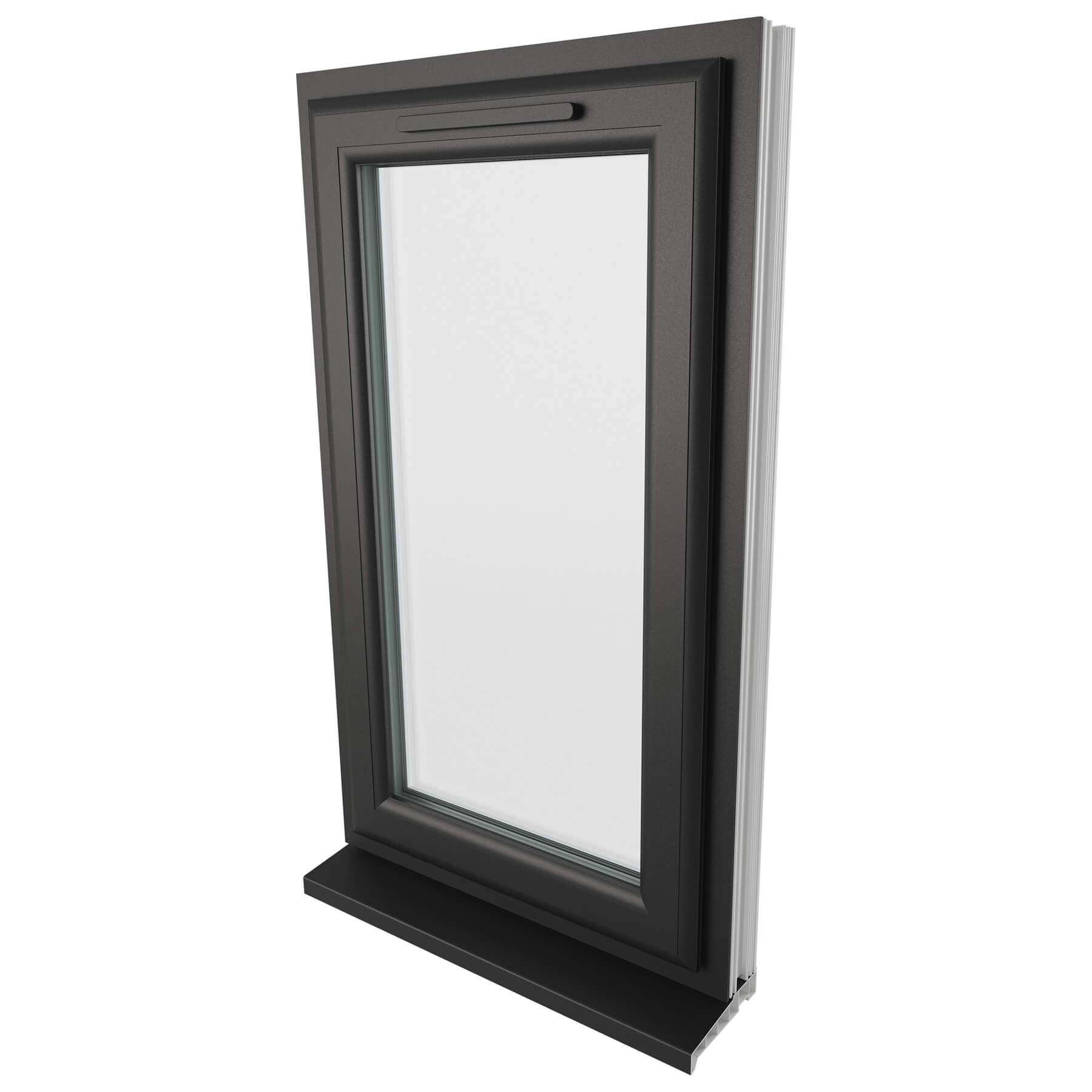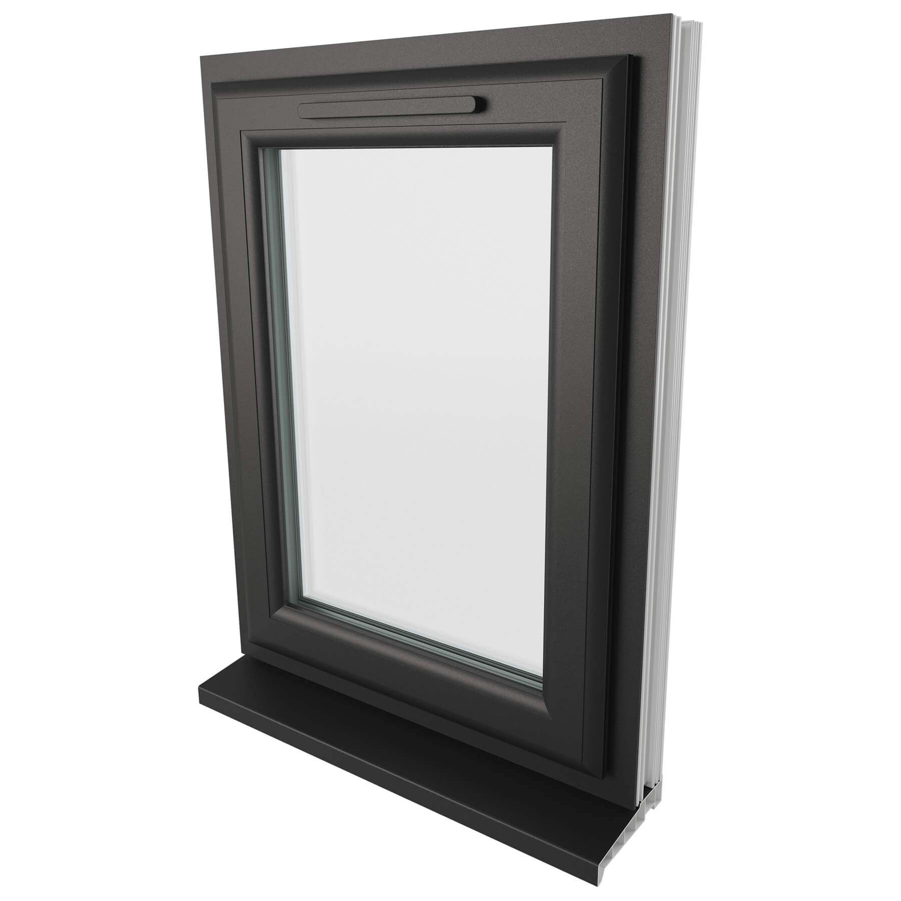 Crystal 1 Clear Glass Double Glazed Side Hung uPVC Window - Black and White - Left Hand.