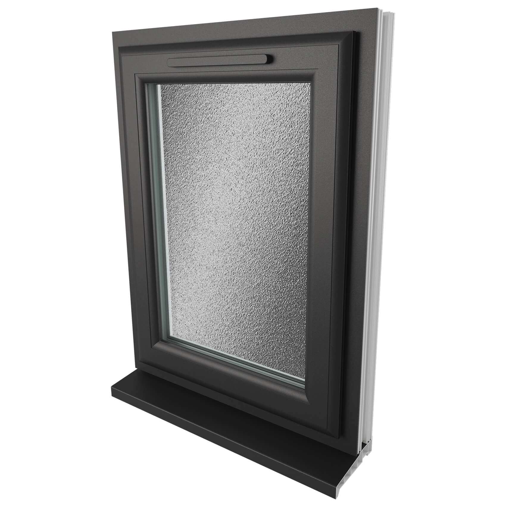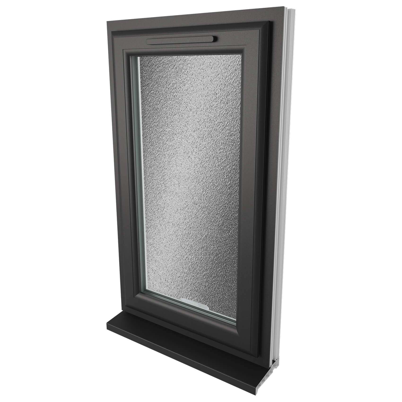 Crystal 1 Obscure Glass Double Glazed Side Hung uPVC Window - Black and White - Left Hand.