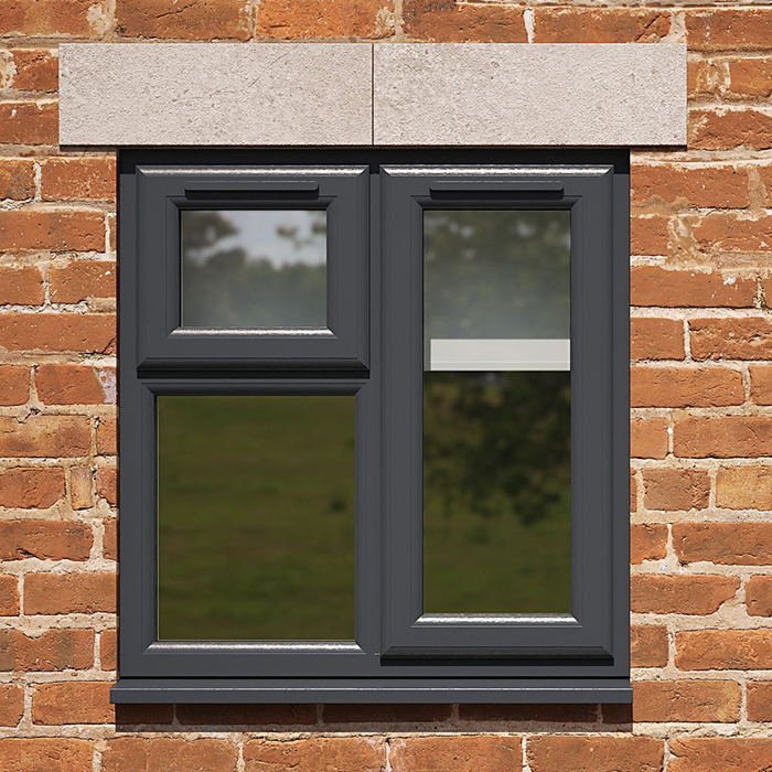 Crystal 2 Clear Glass Double Glazed uPVC Window - Grey and White - Right Handed