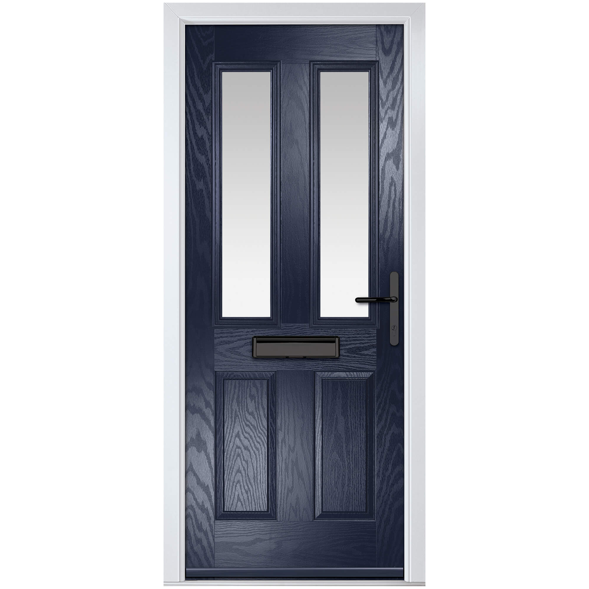 Crystal Carnoustie Left Hand External Door with 2 Panels and 2 Stipolytte Glazed Light - Blue.
