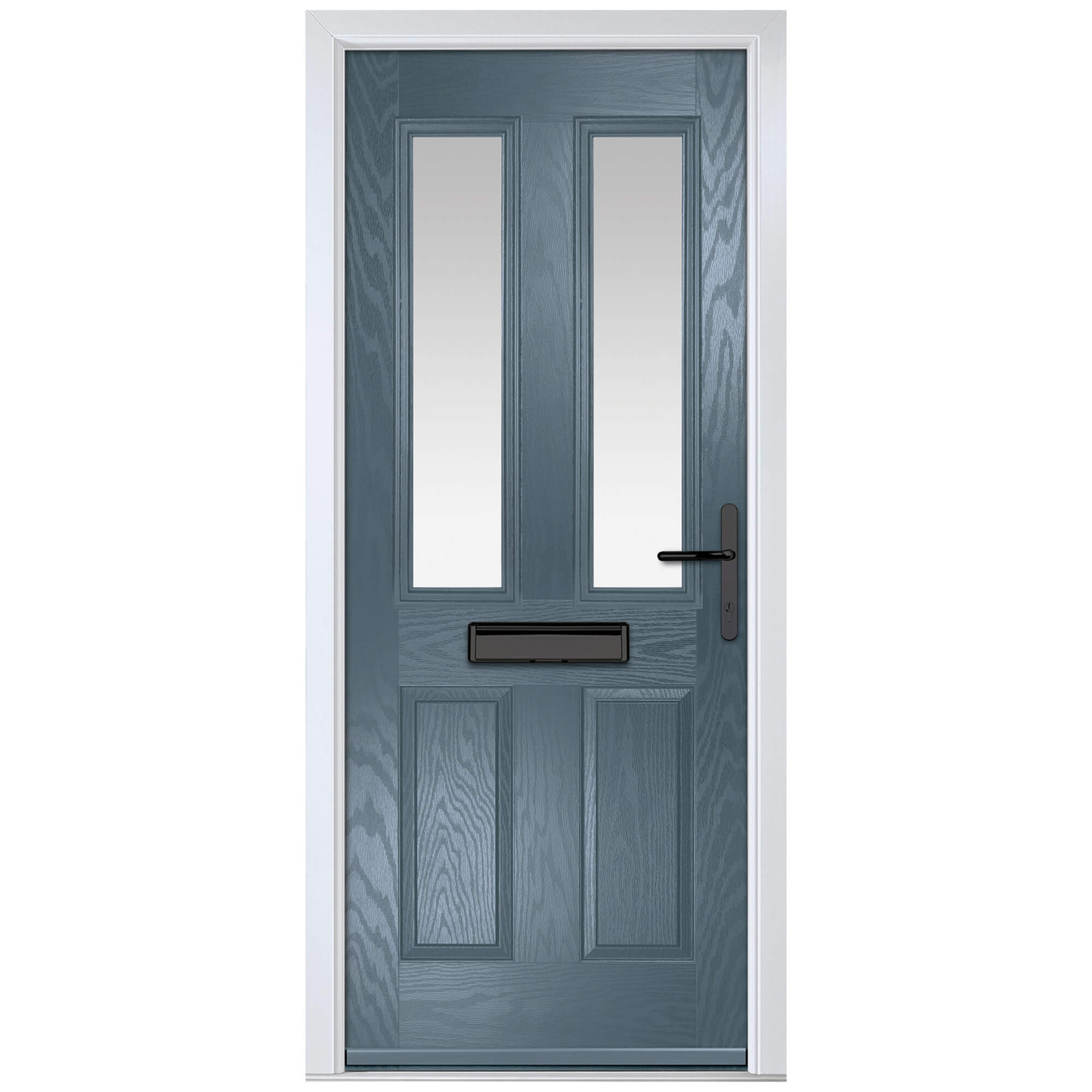 Crystal Carnoustie Left Hand External Door with 2 Panels and 2 Stipolytte Glazed Light - Slate Grey.