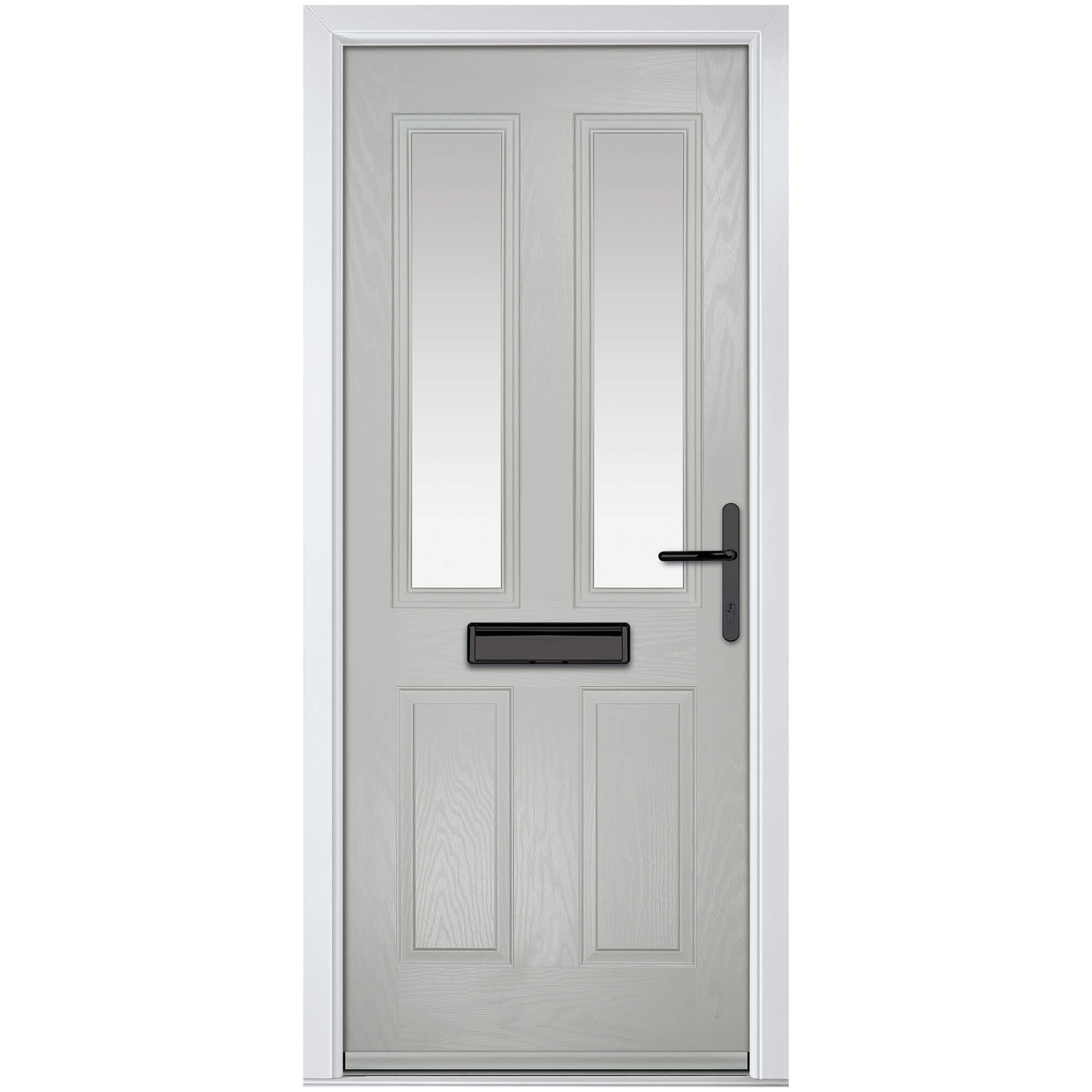 Crystal Carnoustie Left Hand External Door with 2 Panels and 2 Stipolytte Glazed Light - Agate Grey.
