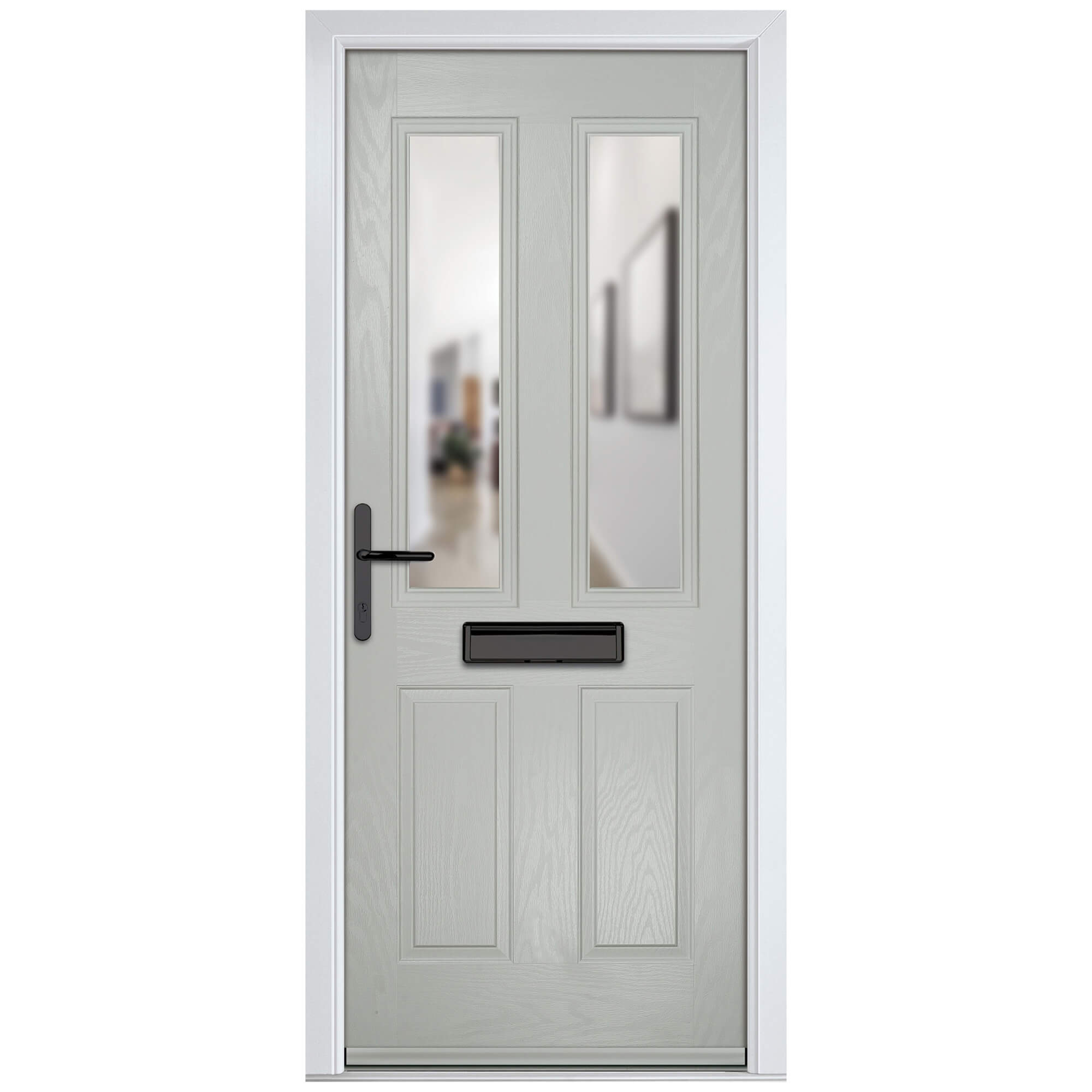 Crystal Carnoustie Right Hand External Door with 2 Panels and 2 Clear Glazed Light - Agate Grey.