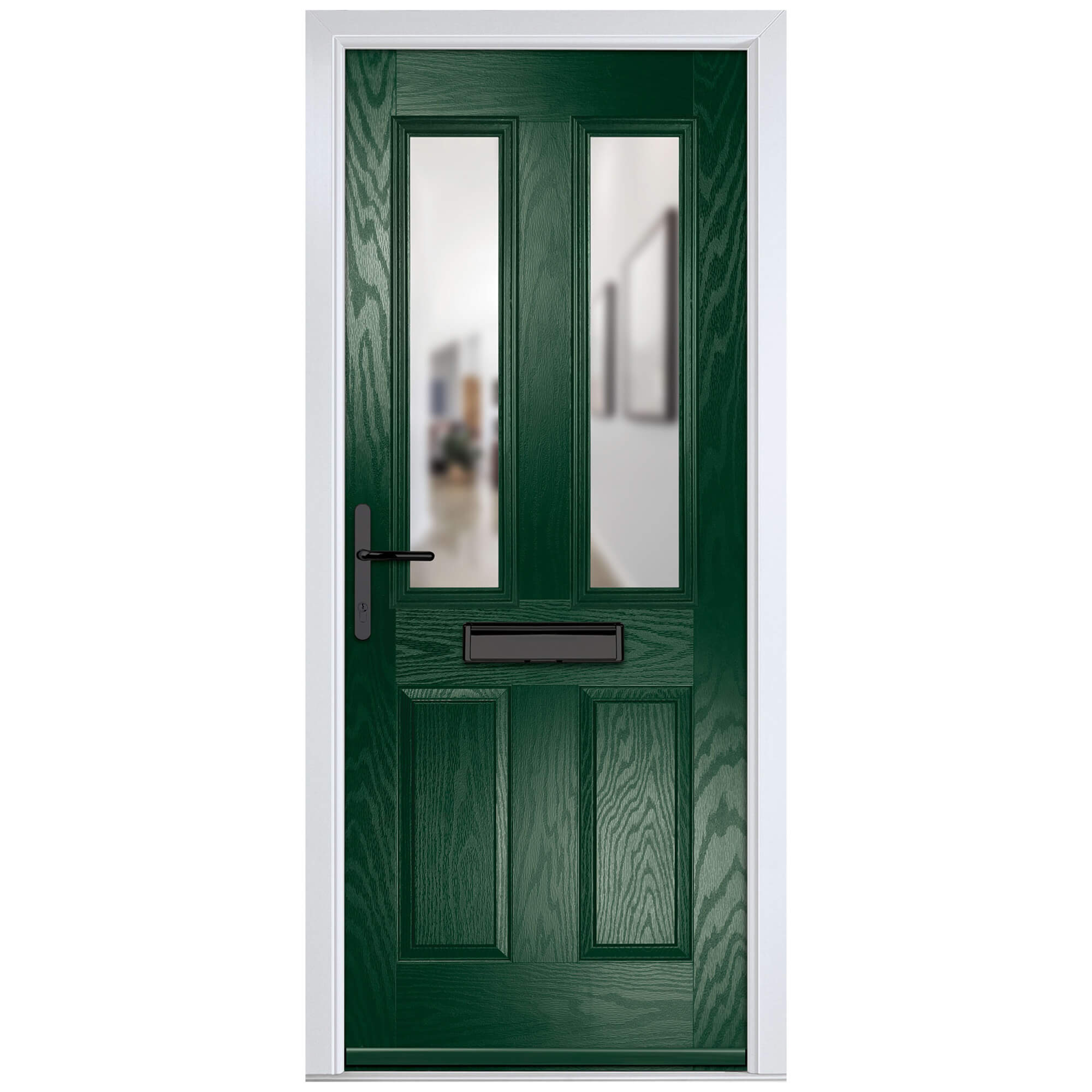 Crystal Carnoustie Right Hand External Door with 2 Panels and 2 Clear Glazed Light - Green.