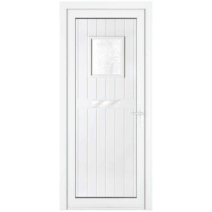 Crystal Chatsworth Left Hand uPVC External Door with 12 Panel and 1 Obscure Double Glazed Light - White.