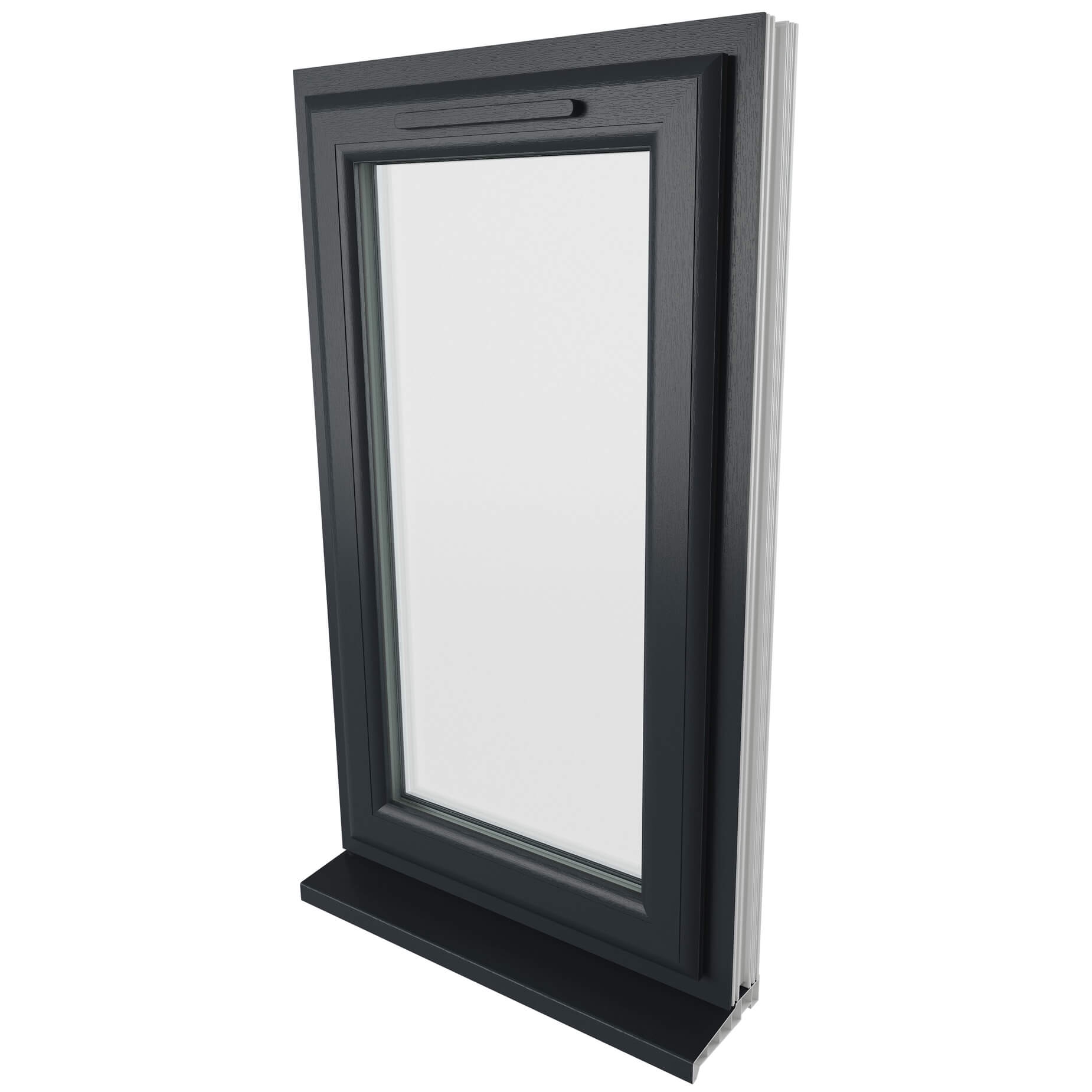 Crystal Clear Glass Triple Glazed uPVC Window - Grey and White - Left Handed.