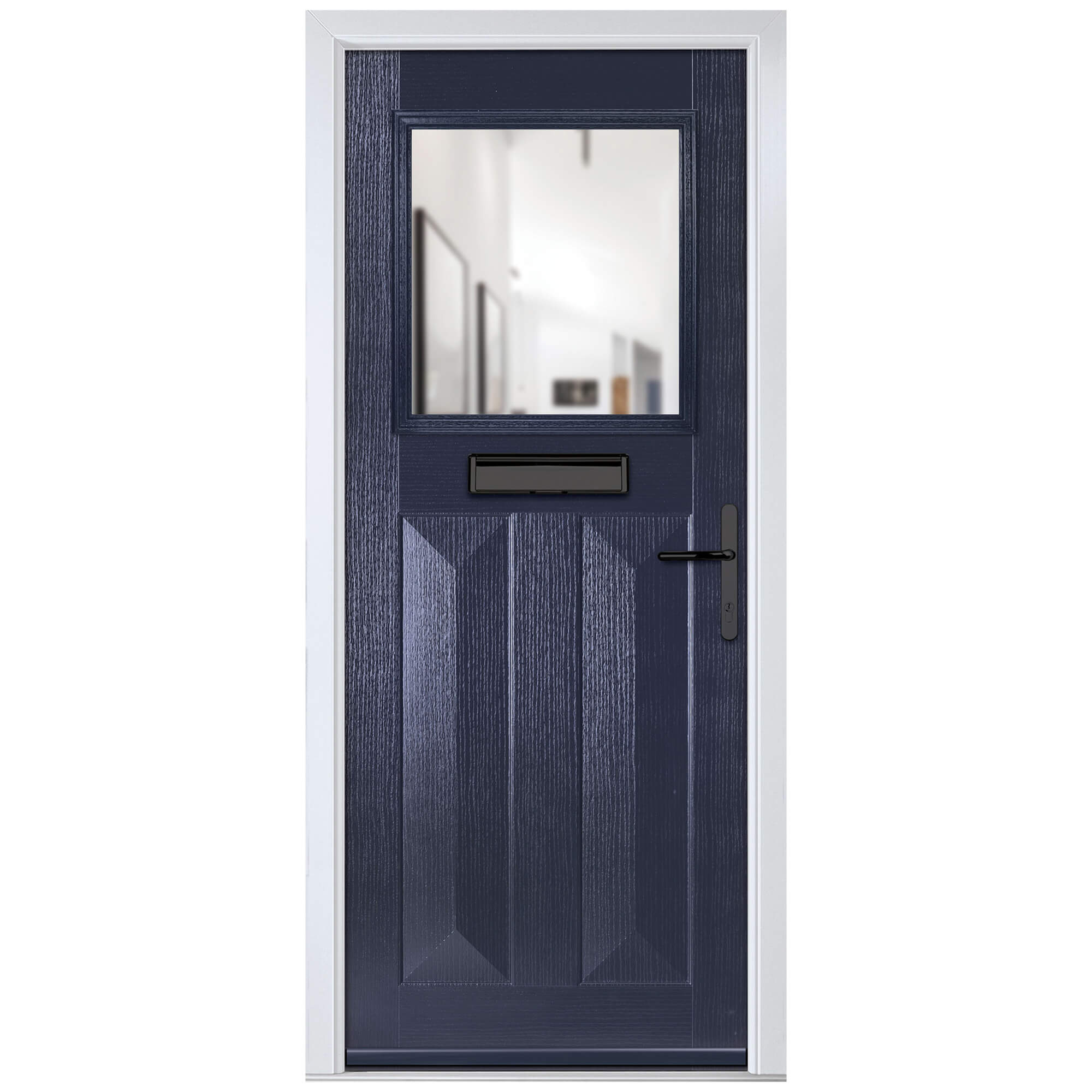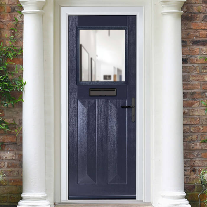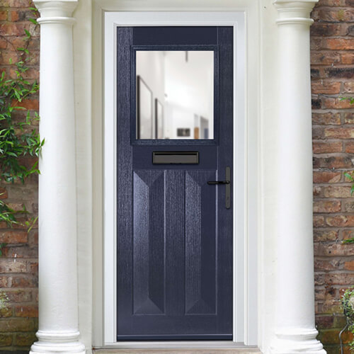 Crystal Eaton Left Hand External Door with 2 Panels and 1 Clear Glazed Light - Blue.