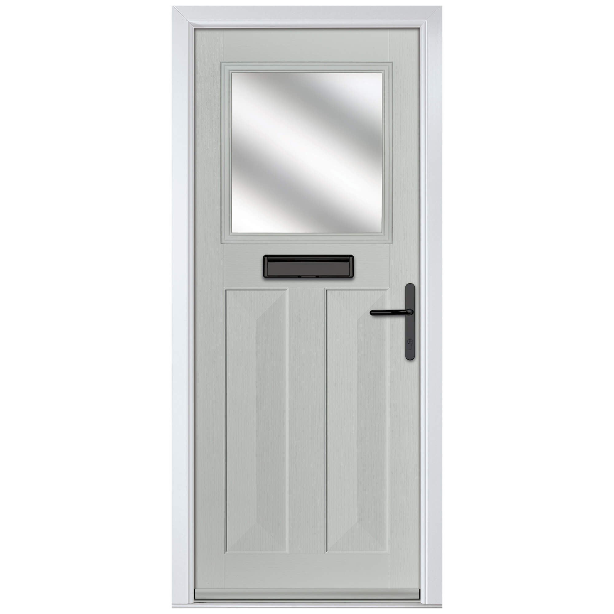 Crystal Eaton Left Hand External Door with 2 Panels and 1 Stipolytte Glazed Light - Agate Grey.