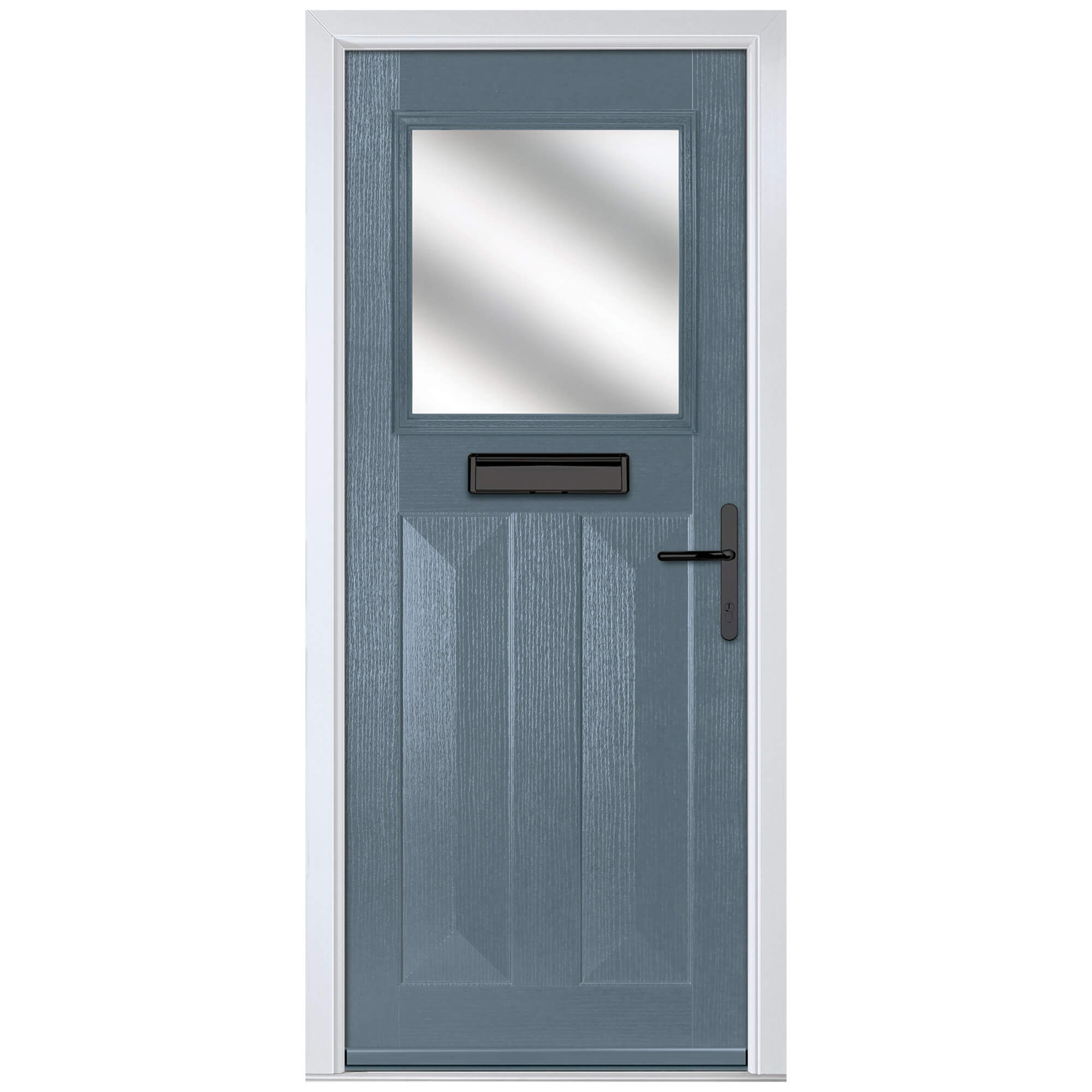 Crystal Eaton Left Hand External Door with 2 Panels and 1 Stipolytte Glazed Light - Slate Grey.