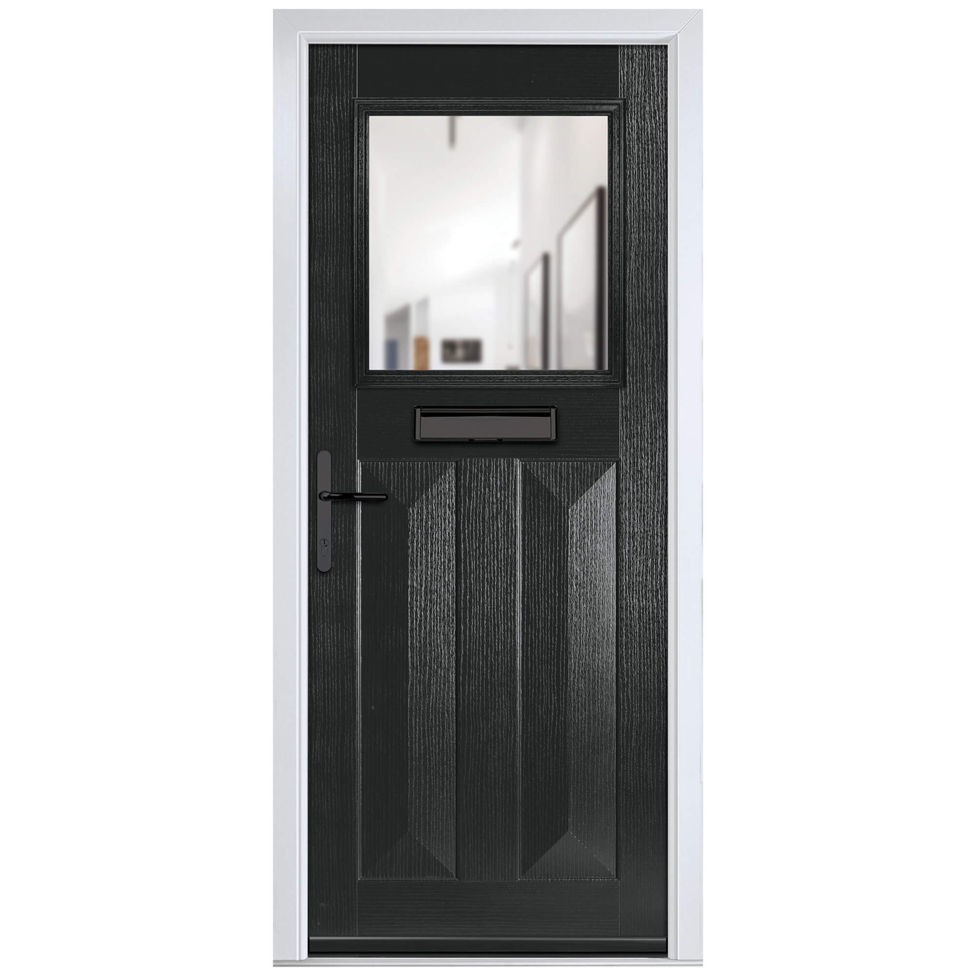 Crystal Eaton Right Hand External Door with 2 Panels and 1 Clear Glazed Light - Black.