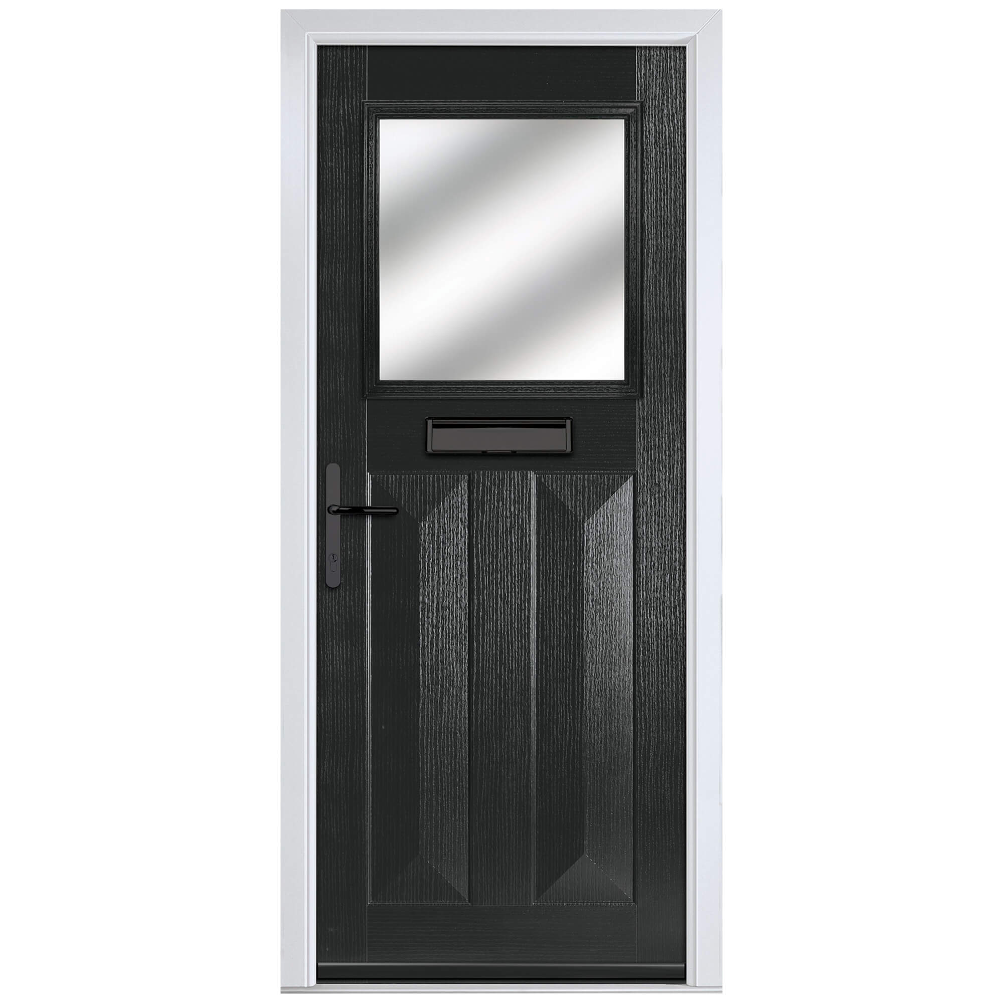 Crystal Eaton Right Hand External Door with 2 Panels and 1 Clear Glazed Light - Black.