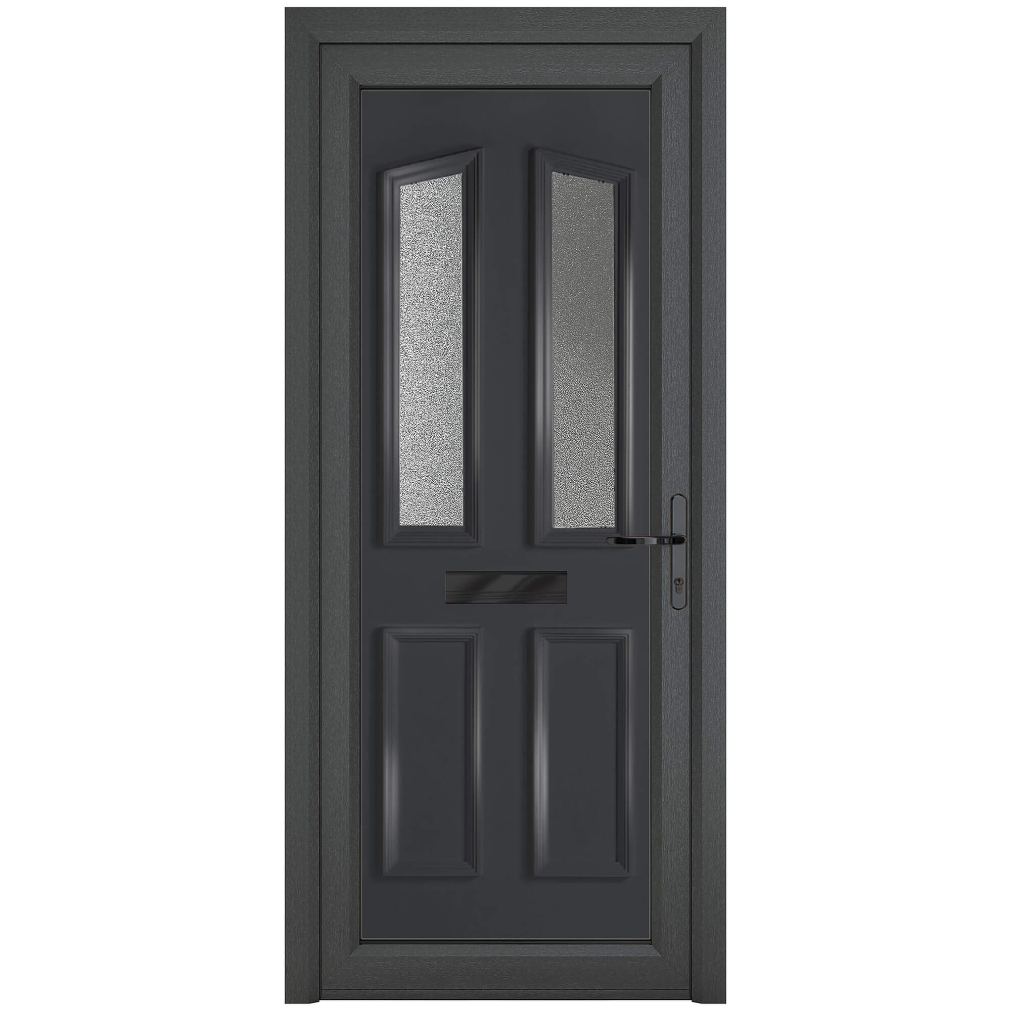 Crystal Kensington Left Hand uPVC External Door with 2 Panel and 2 Obscure Glazed Light - Grey-White.