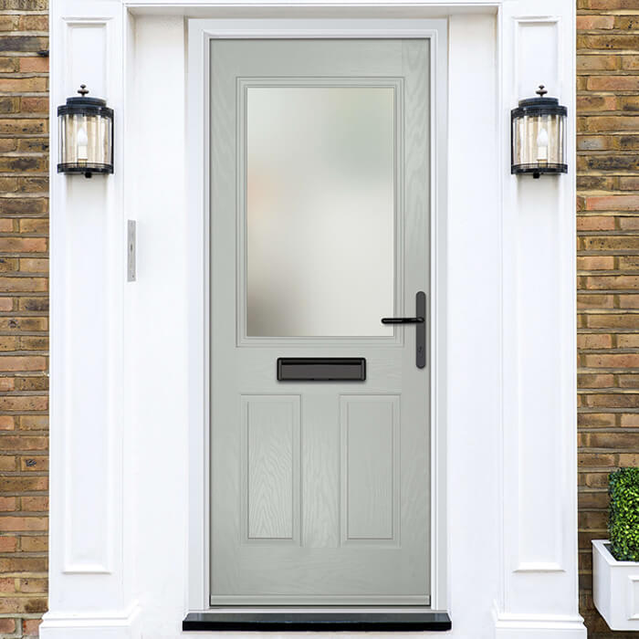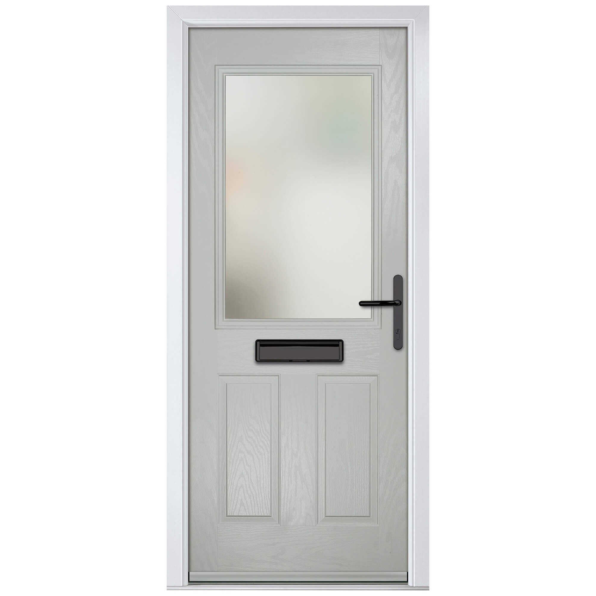 Crystal Lytham Left Hand External Door with 2 Panels and 1 Stipolytte Glazed Light - Agate Grey.