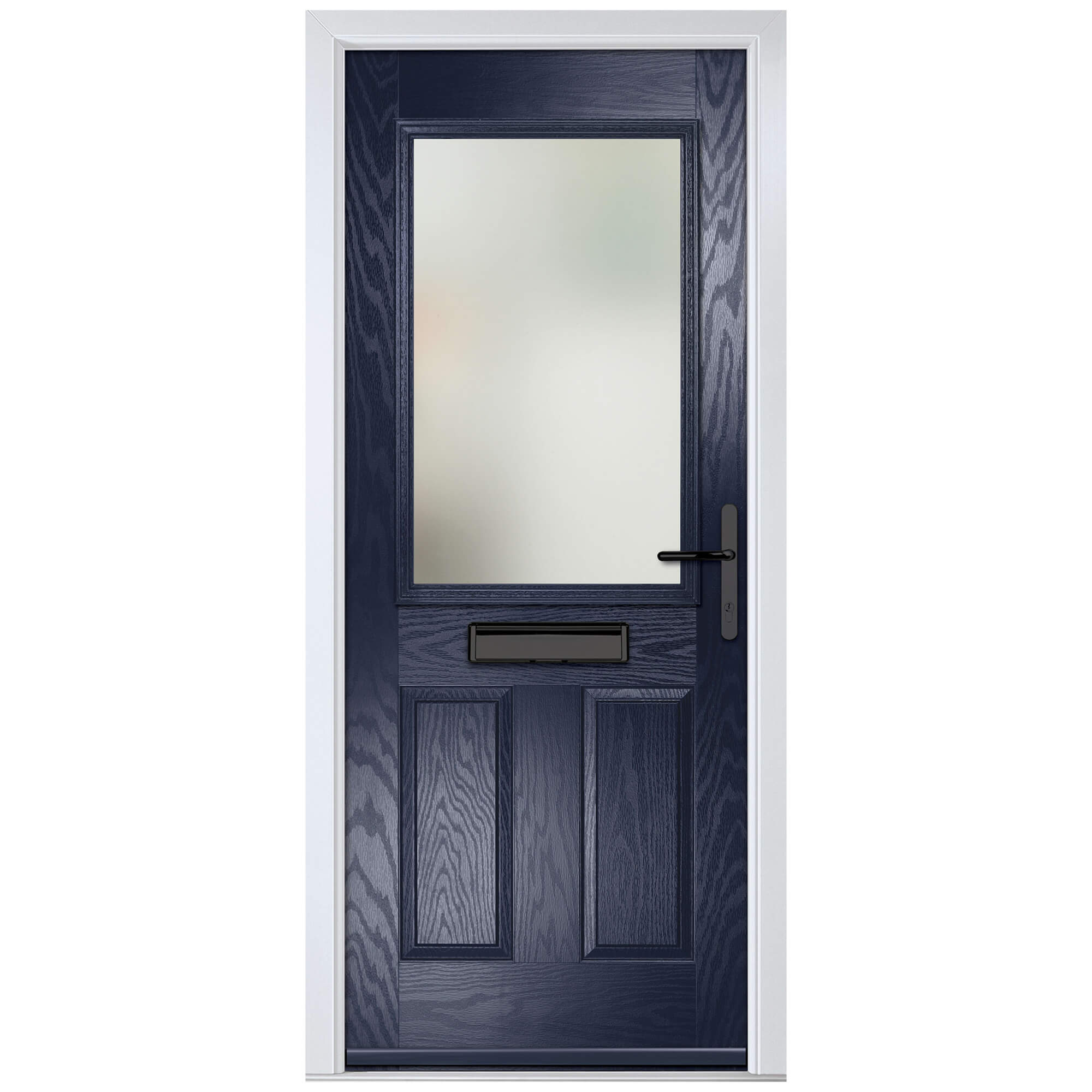 Crystal Lytham Left Hand External Door with 2 Panels and 1 Stipolytte Glazed Light - Blue.