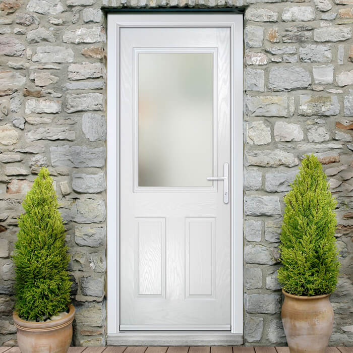 Crystal Lytham Left Hand External Door with 2 Panels and 1 Stipolytte Glazed Light - White.