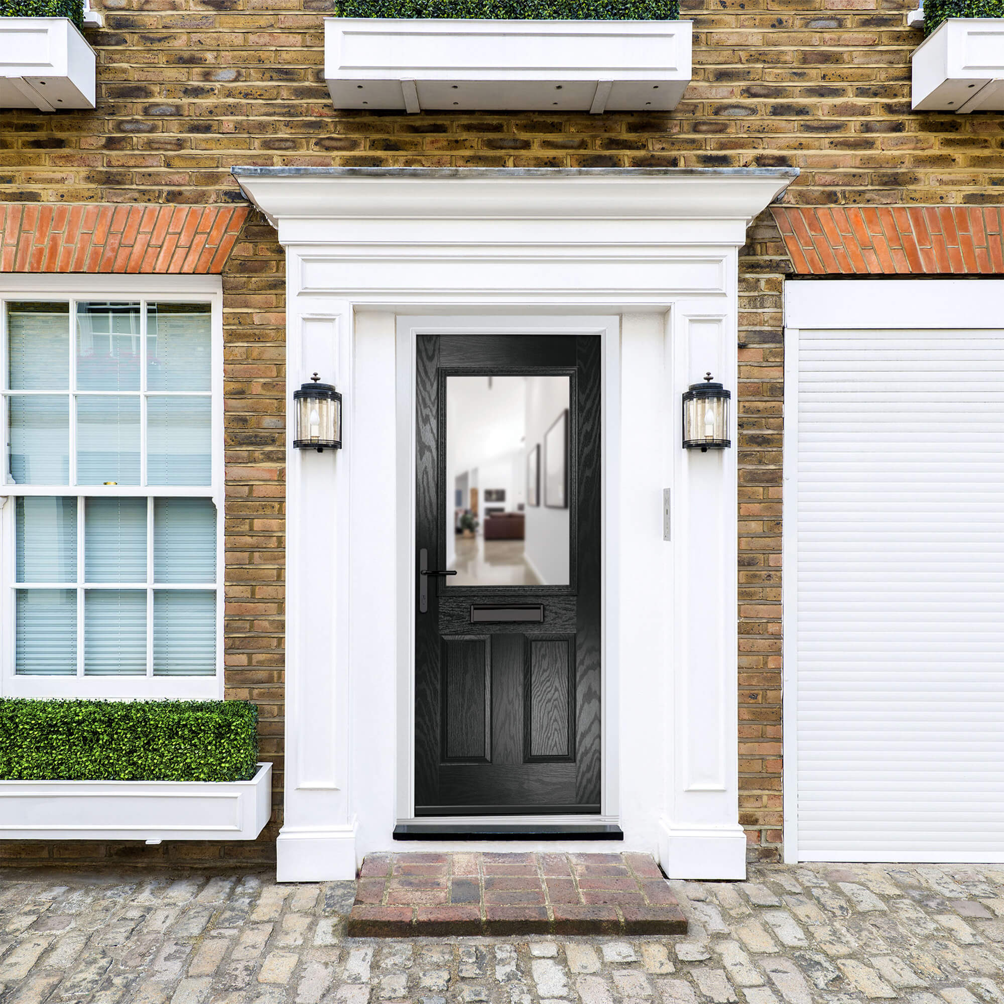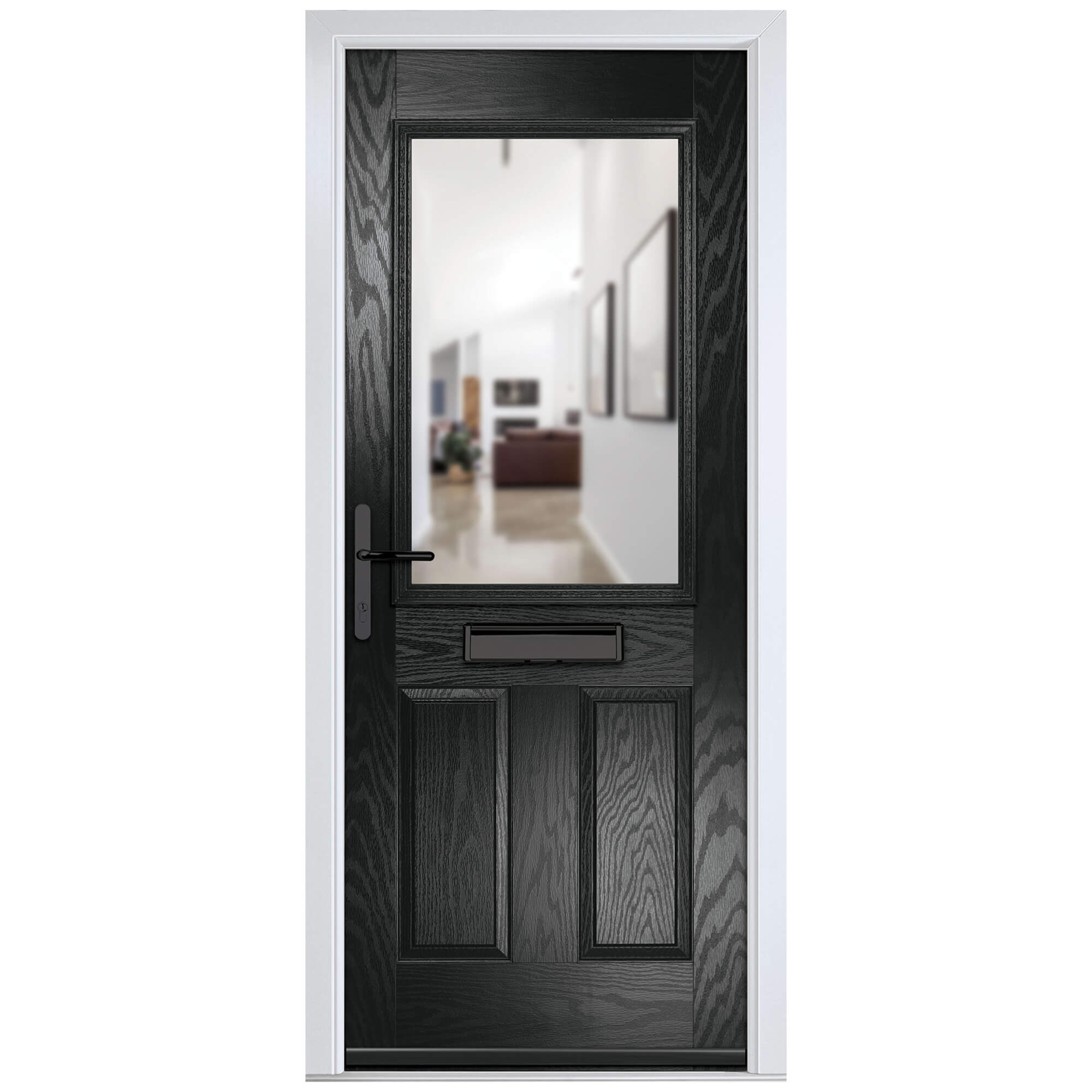 Crystal Lytham Right Hand External Door with 2 Panels and 1 Stipolytte Glazed Light - Black.
