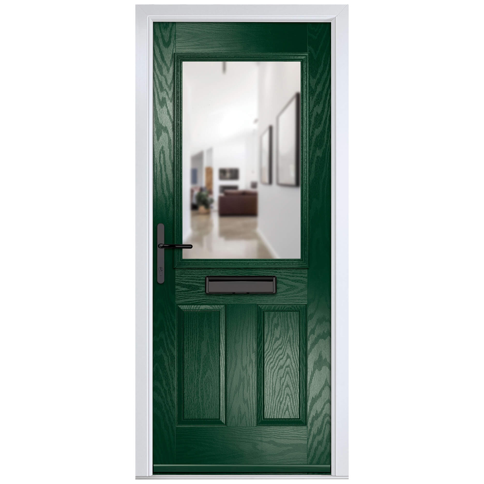 Crystal Lytham Right Hand External Door with 2 Panels and 1 Stipolytte Glazed Light - Green.