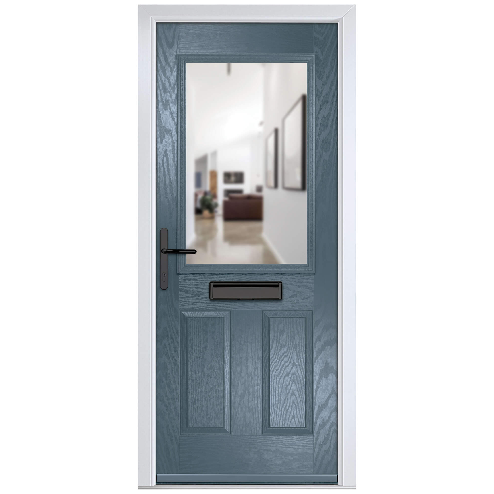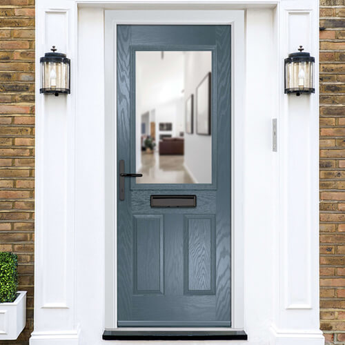 Crystal Lytham Right Hand External Door with 2 Panels and 1 Stipolytte Glazed Light - Slate Grey.