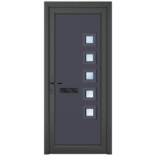 Crystal Malaga Right Hand uPVC External Door with 5 Obscure Glazed Light - Grey-White.