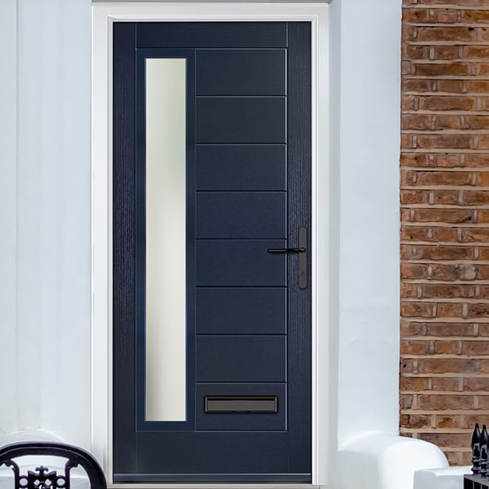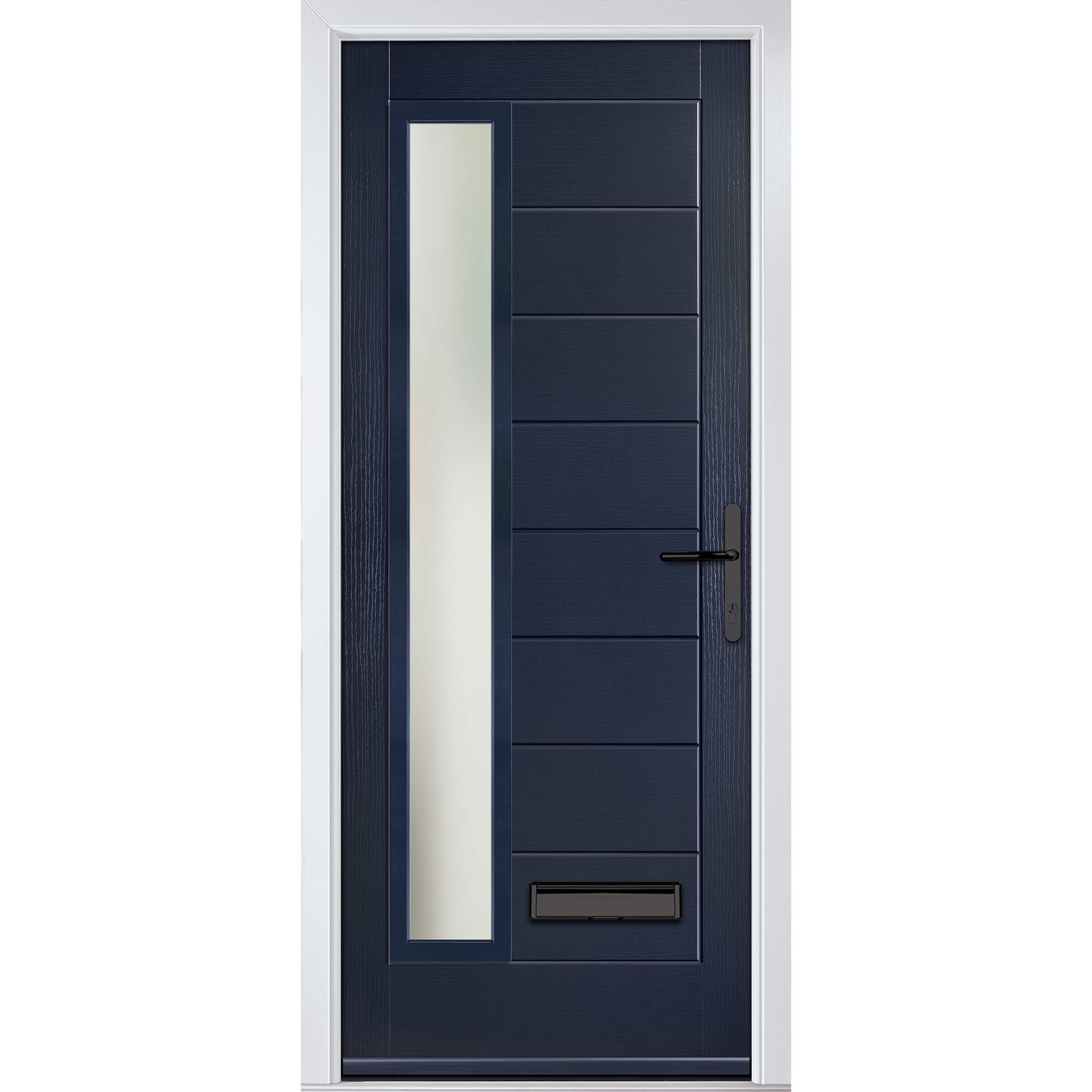Crystal Monza Left Hand External Door with 8 Panel and 1 Stipolytte Glazed Light - Blue.