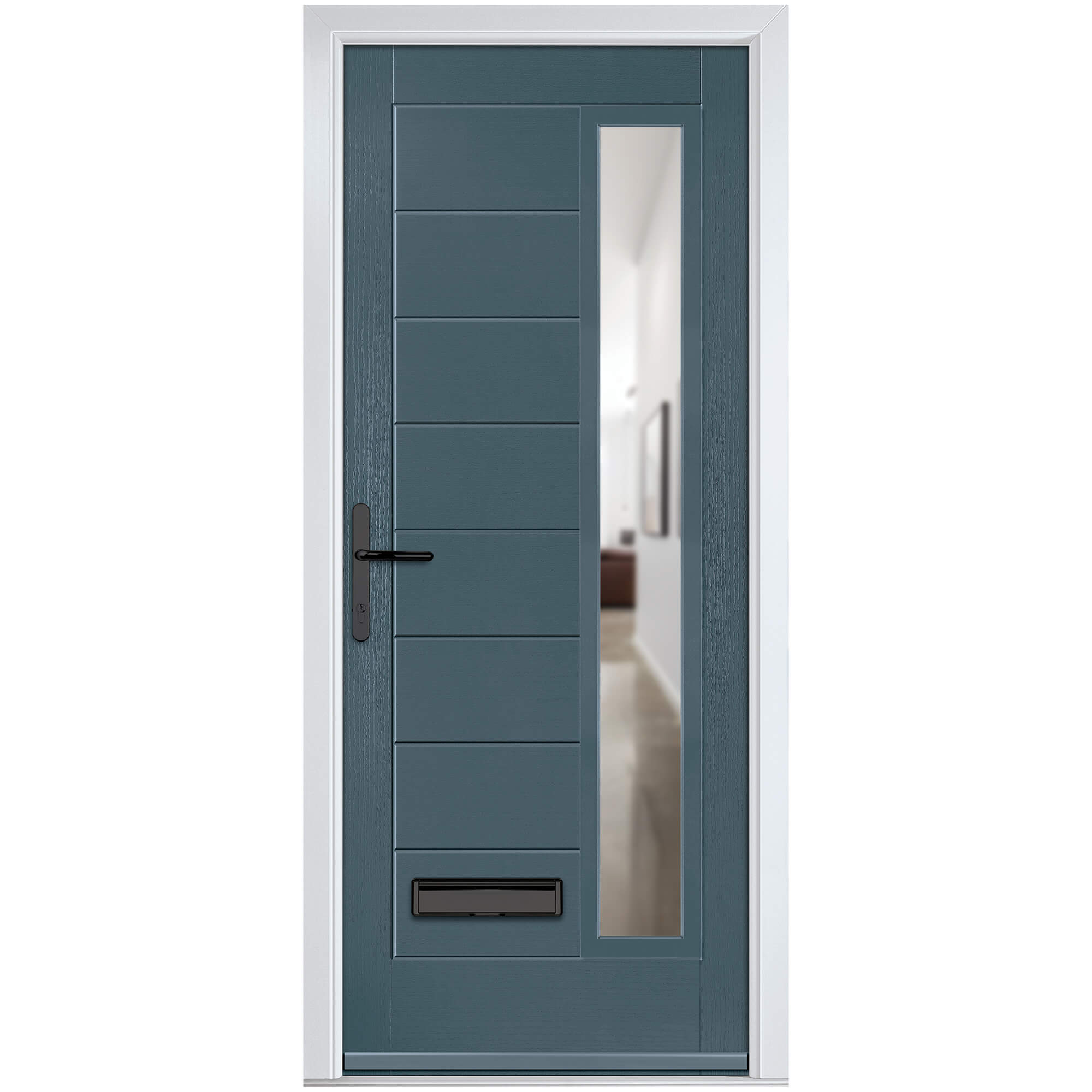 Crystal Monza Right Hand External Door with 8 Panel and 1 Clear Glazed Light - Slate Grey