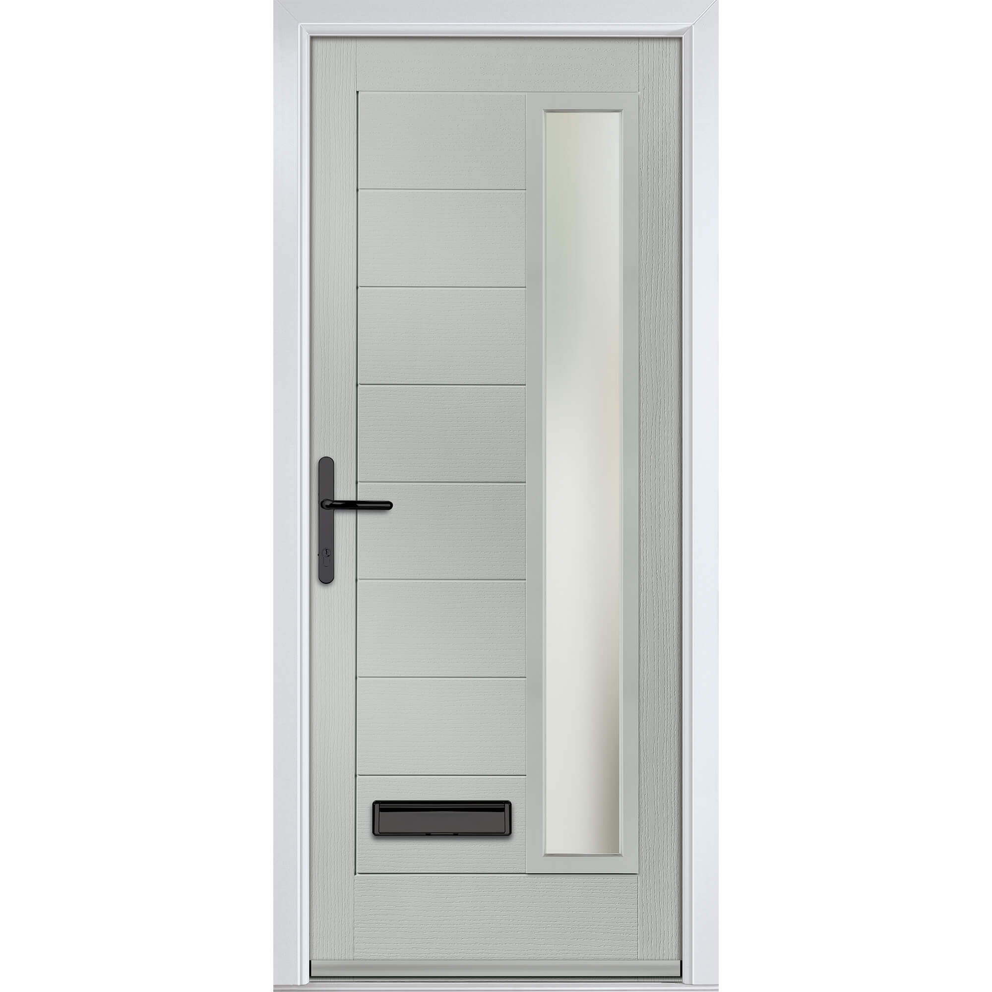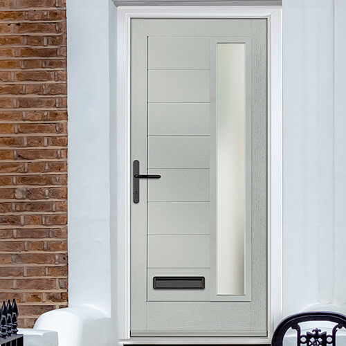 Crystal Monza Right Hand External Door with 8 Panel and 1 Stipolytte Glazed Light - Agate Grey.