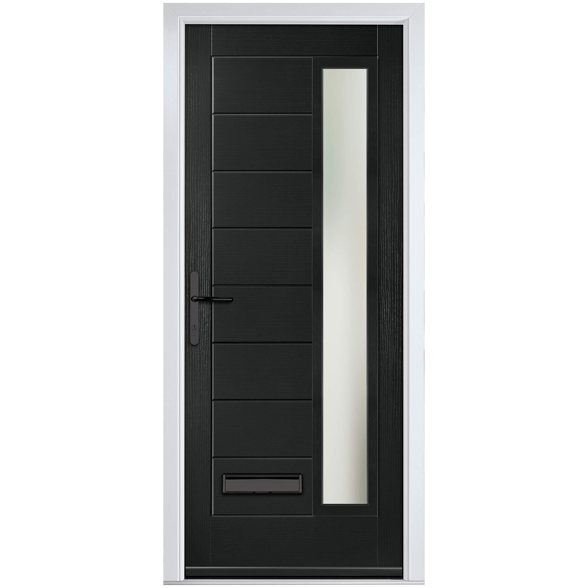 Crystal Monza Right Hand External Door with 8 Panel and 1 Stipolytte Glazed Light - Black.
