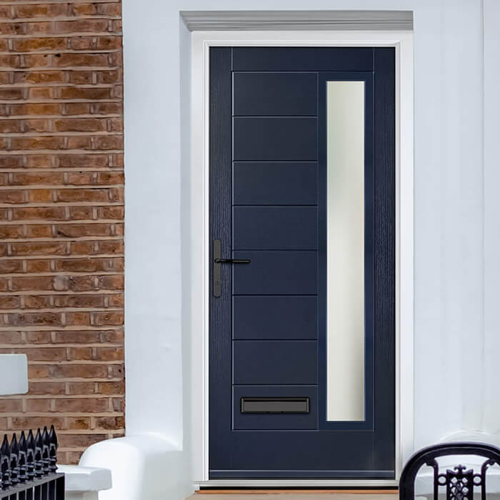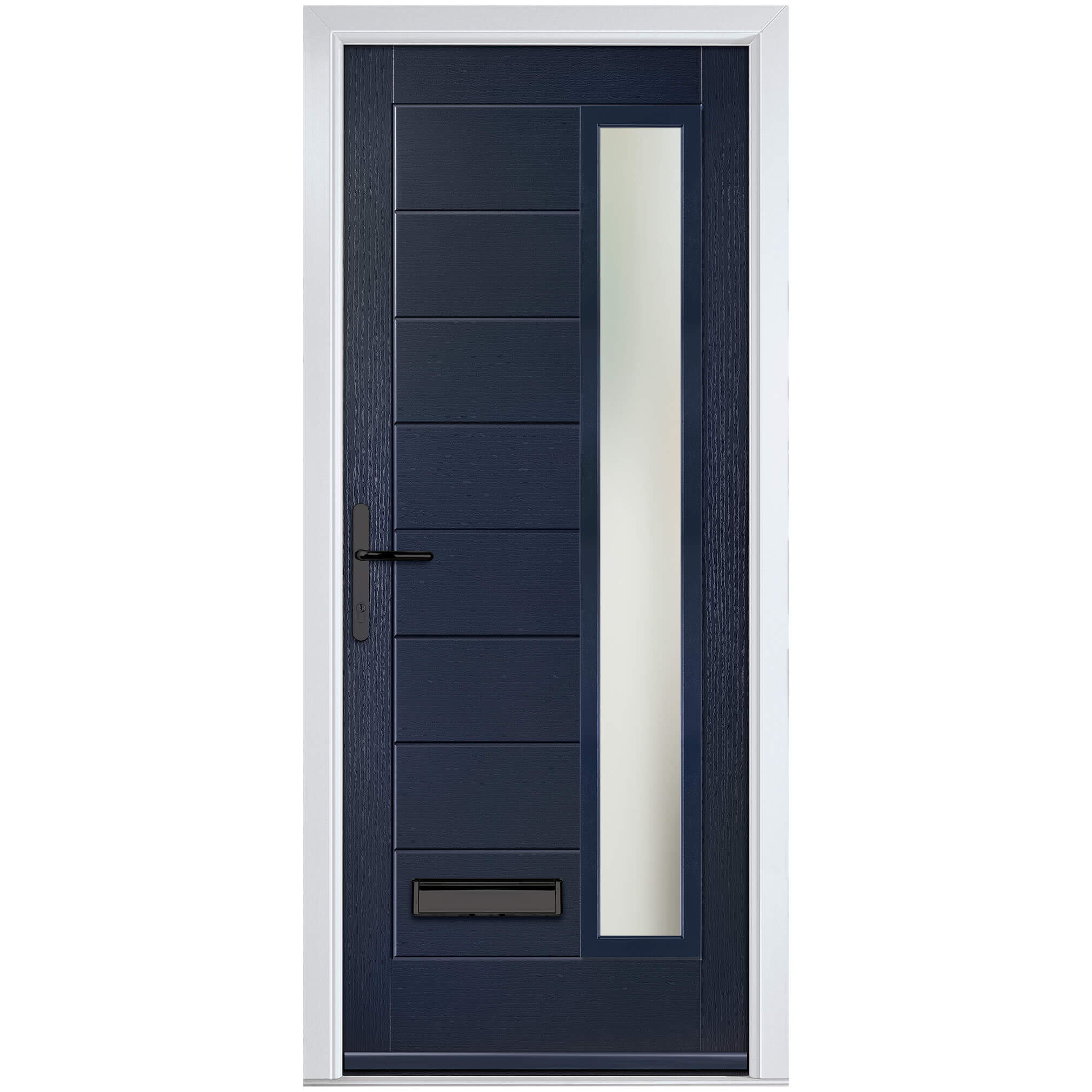 Crystal Monza Right Hand External Door with 8 Panel and 1 Stipolytte Glazed Light - Blue.