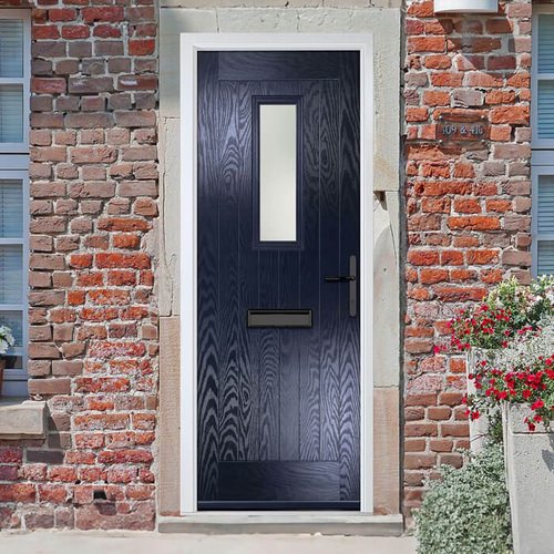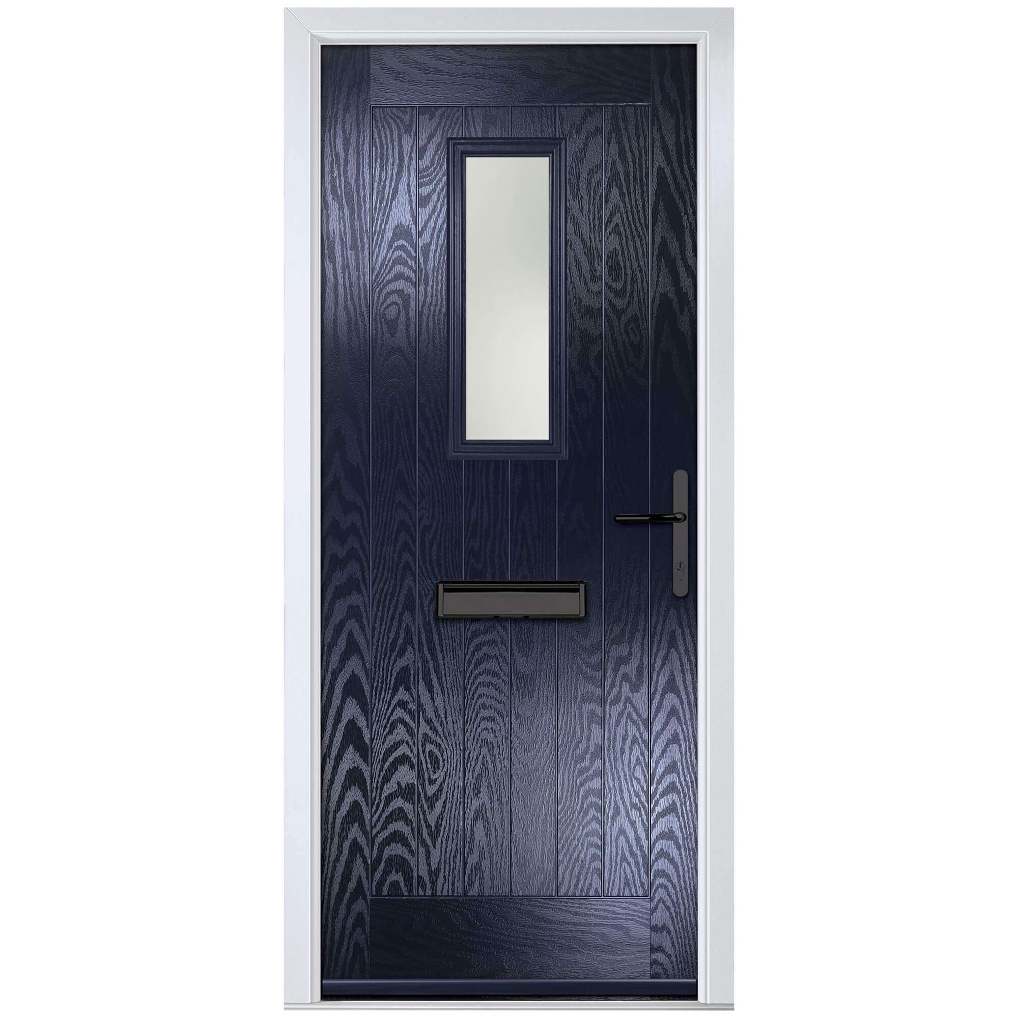 Crystal Sunningdale Left Hand External Door with 6 Panel and 1 Stipolytte Glazed Light - Blue.