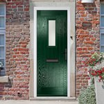 Crystal Sunningdale Left Hand External Door with 6 Panel and 1 Stipolytte Glazed Light - Green.