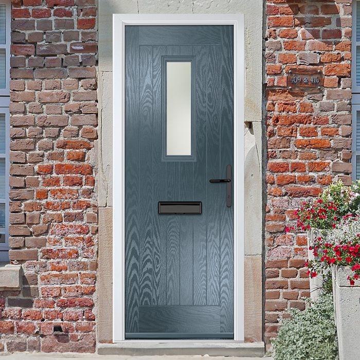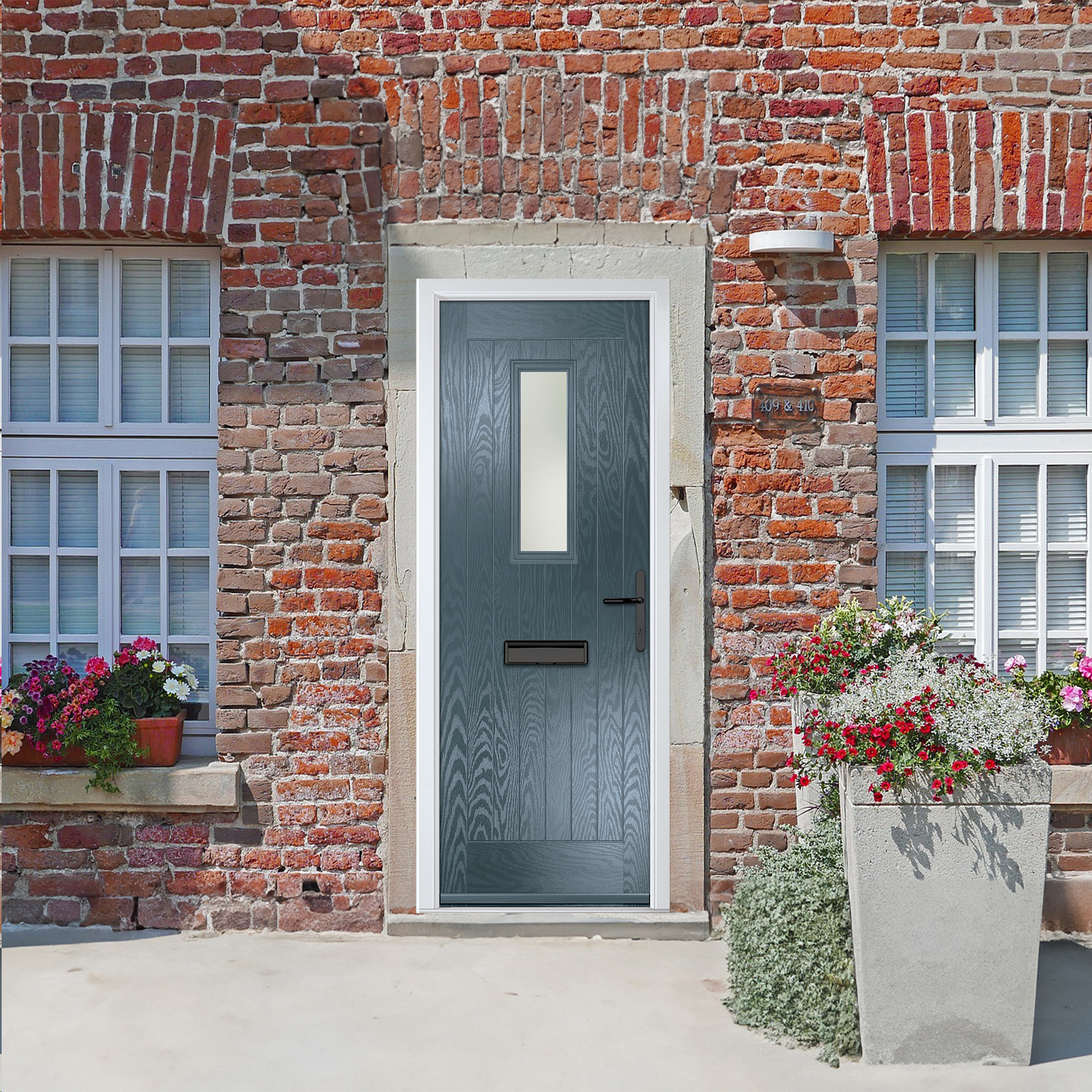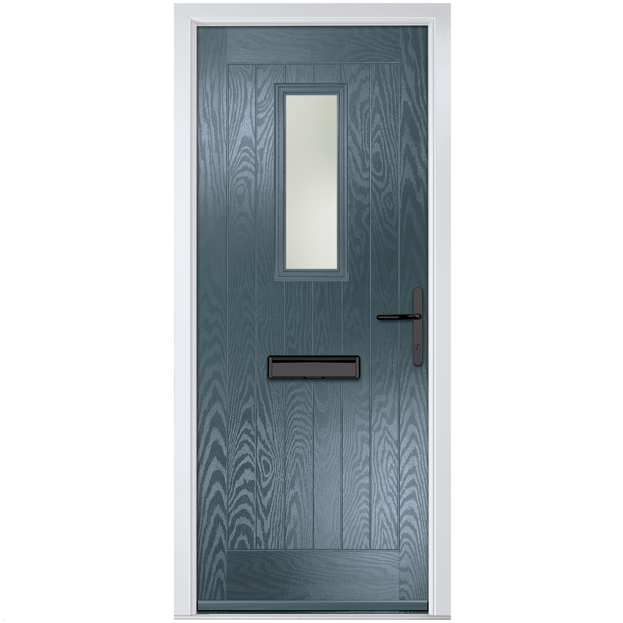 Crystal Sunningdale Left Hand External Door with 6 Panel and 1 Stipolytte Glazed Light - Slate Grey.