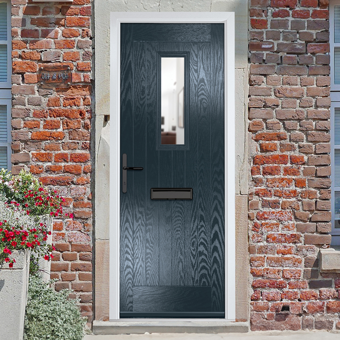 Crystal Sunningdale Right Hand External Door with 6 Panel and 1 Clear Glazed Light - Anthracite Grey.