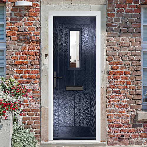 Crystal Sunningdale Right Hand External Door with 6 Panel and 1 Clear Glazed Light - Blue.