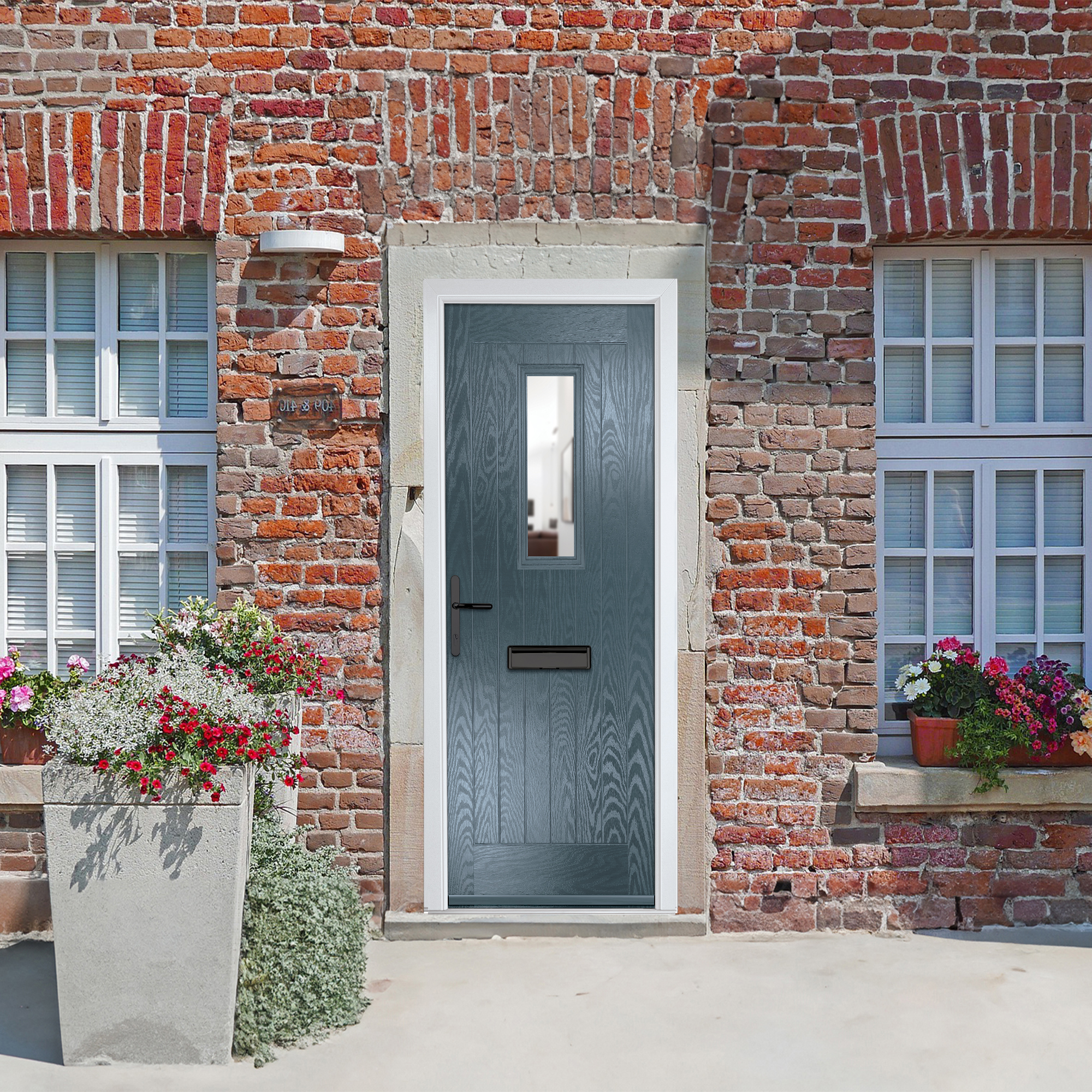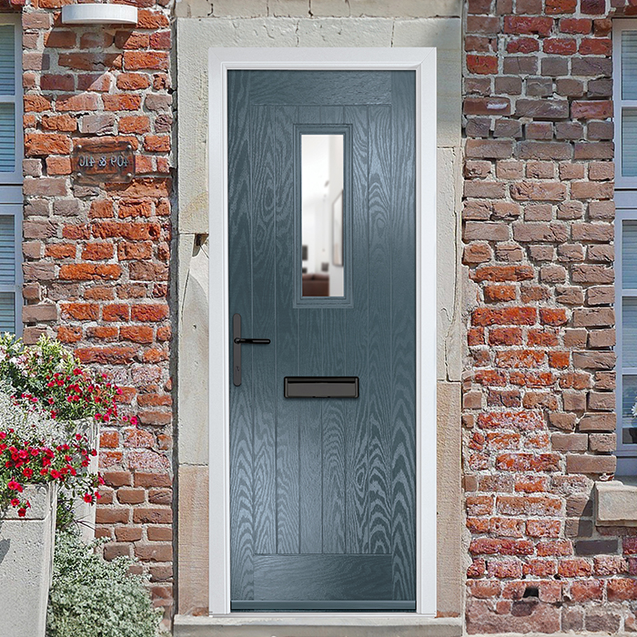 Crystal Sunningdale Right Hand External Door with 6 Panel and 1 Clear Glazed Light - Slate Grey.
