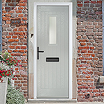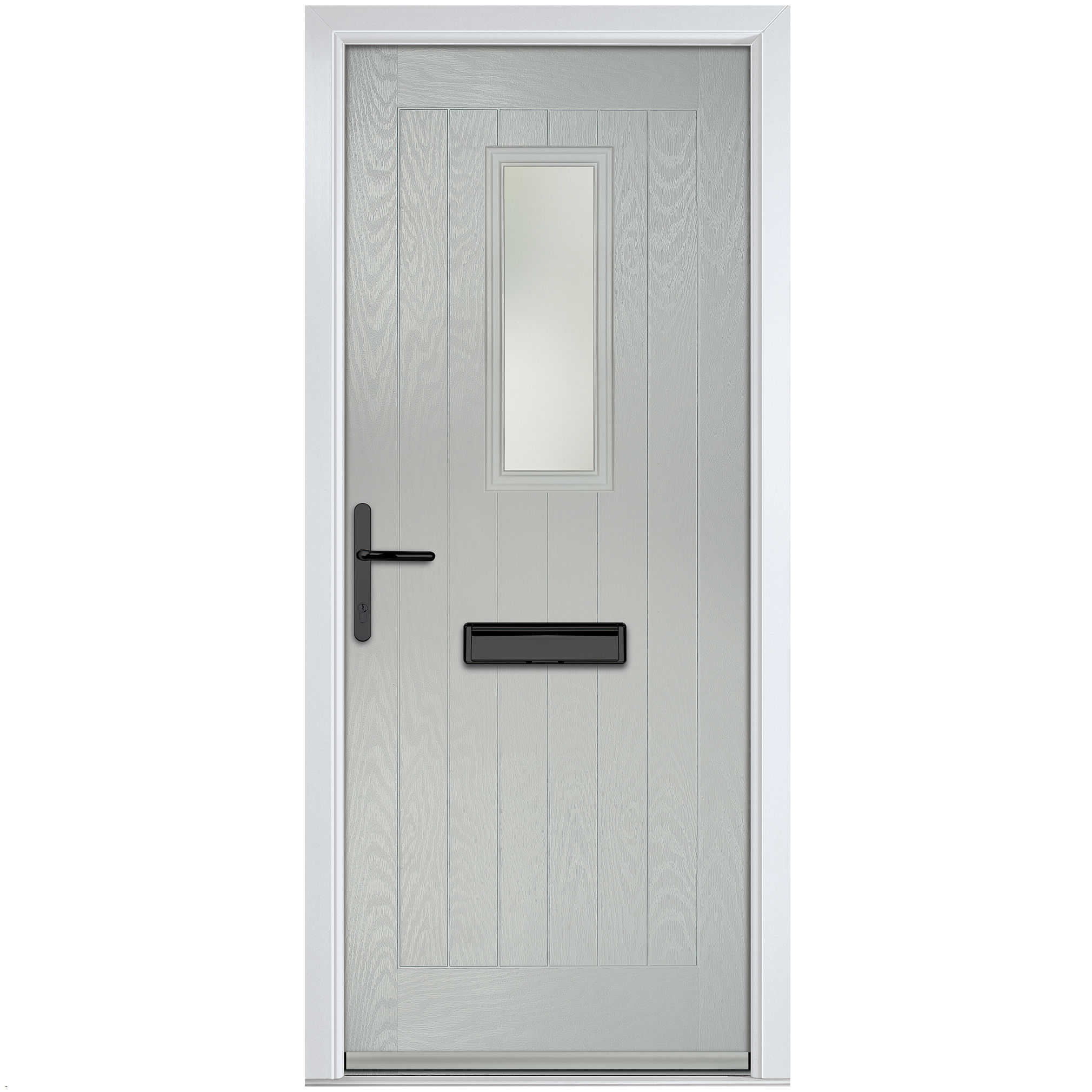 Crystal Sunningdale Right Hand External Door with 6 Panel and 1 Stipolytte Glazed Light - Agate Grey.