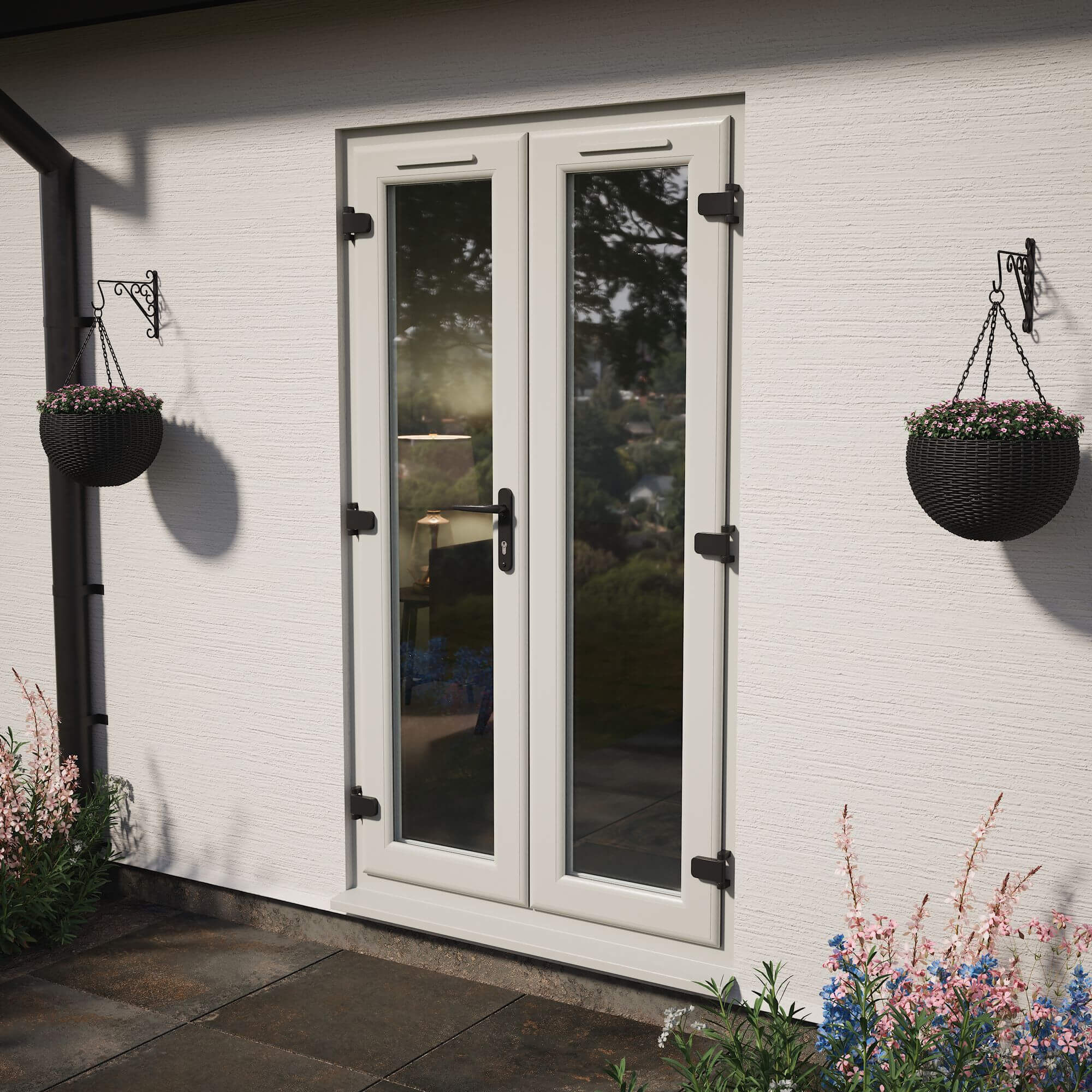Crystal uPVC Left Hand External French Door with 2 Clear Double Glazed Light - Agate-White.