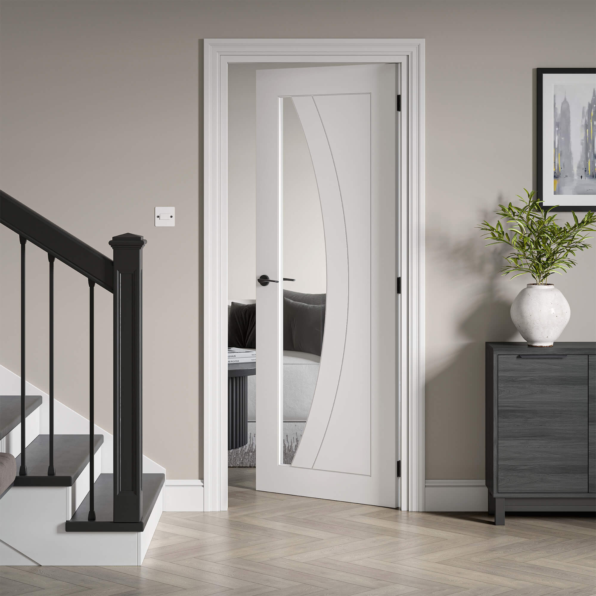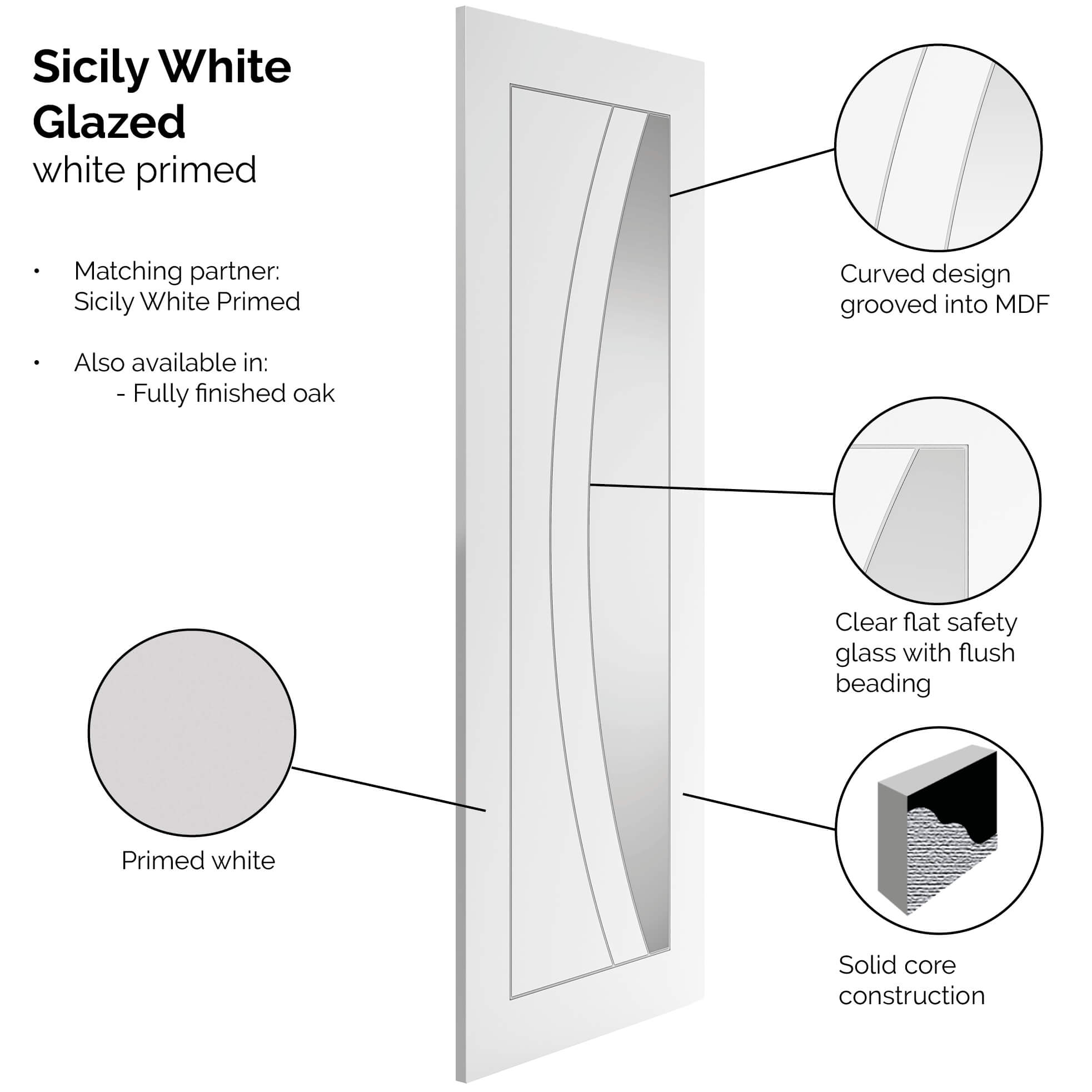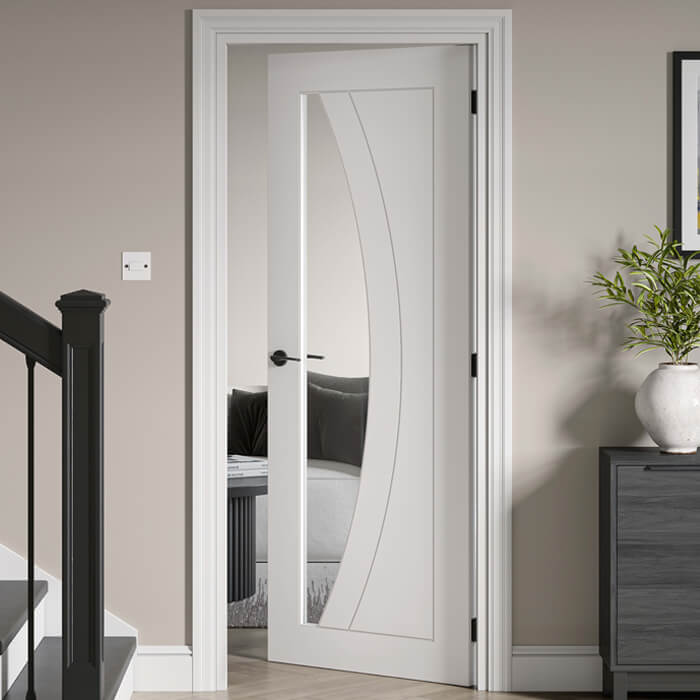 JB Kind Sicily Internal Door with 2 Panel and 1 Clear Glazed Light - White Primed.