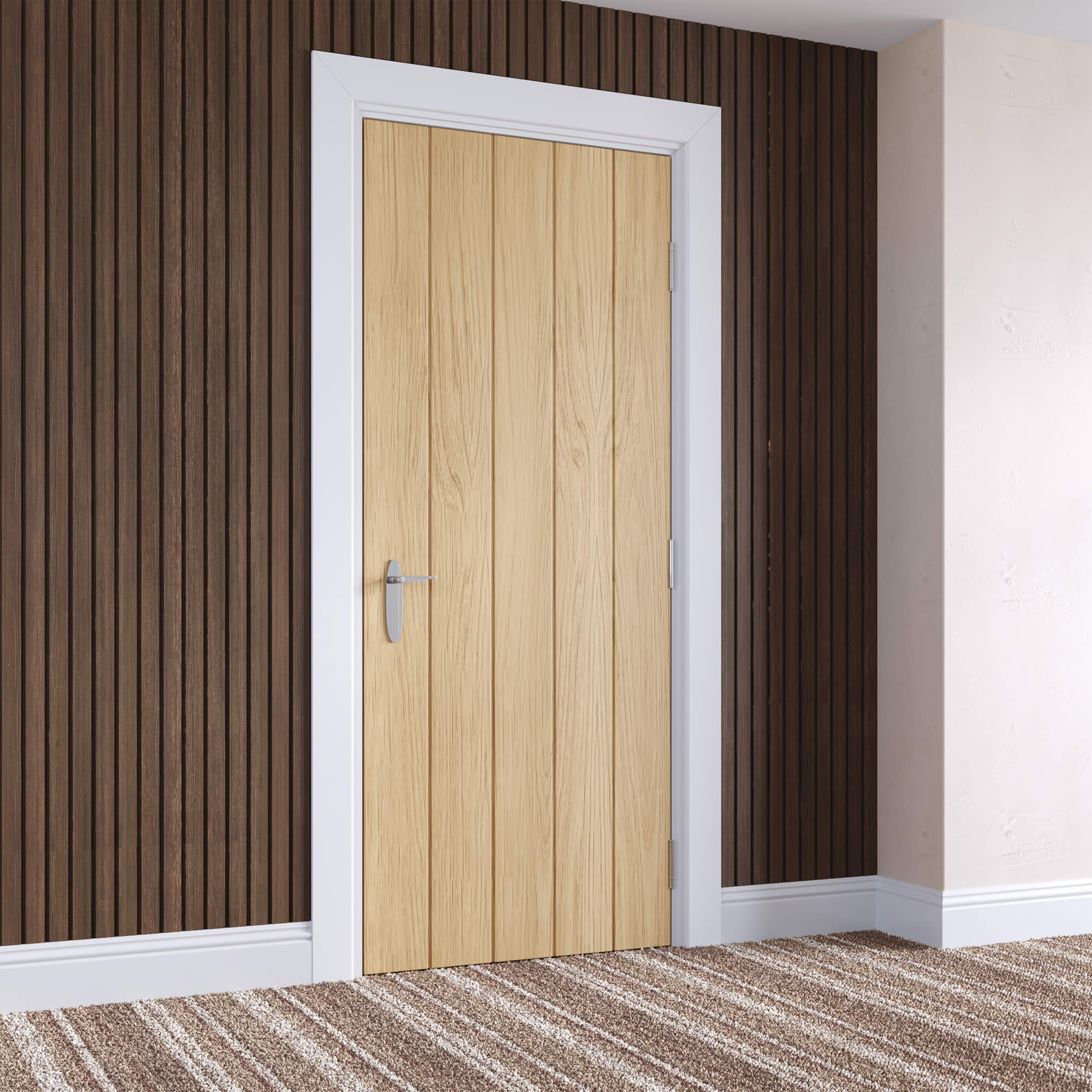 - Five vertical panels, solid, rustic