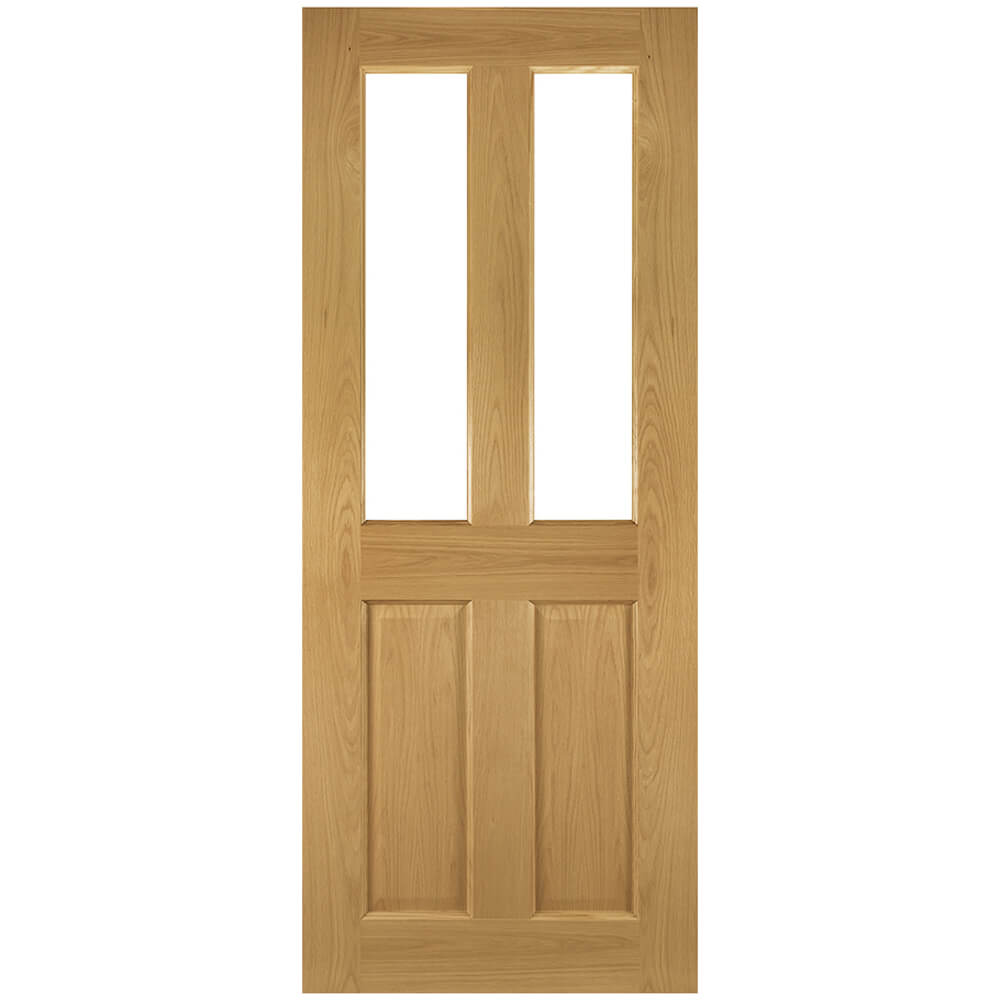 The Joseph Miles Kelby Internal Fire Door with 2 Panel and 2 Clear Glazed Light - Prefinished Oak features