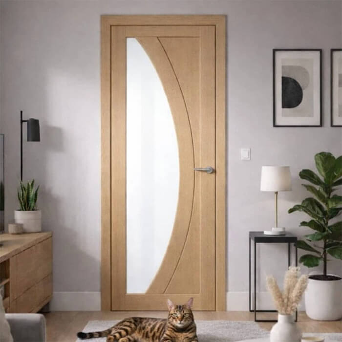 P M Mendes Sorrento Internal Door with 2 Panel and 1 Clear Glazed Light - Prefinished Oak.